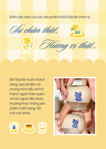 Dĩ nhiên, chúng mình vẫn còn thiếu sót, nhưng mình mong rằng khách hàng sẽ tìm thấy điều mà mình yêu thích. Ví dụ khách có thể đến vì yêu vị caramel hoặc vị sữa chua, đến vì không gian nhẹ nhàng hoặc là vì sự gần gũi của chúng mình. Và tổng thể khách hàng sẽ cảm thấy hài lòng khi trải nghiệm tại Đồi Sữa Bê.