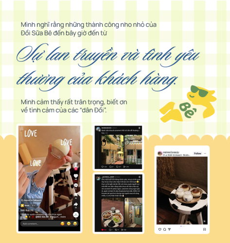 Mình nghĩ rằng những thành công nho nhỏ của Đồi Sữa Bê đến bây giờ đến từ sự lan truyền và tình yêu thương của khách hàng. Dù mới chính thức mở cửa hàng được hơn 1 tháng, quán đã có những khách quen tuần nào cũng ghé qua, hay có rất nhiều bạn trẻ review về quán trên mạng xã hội.