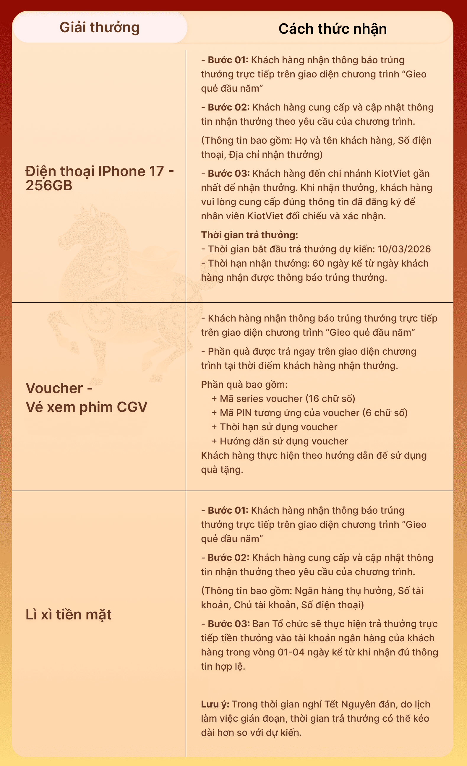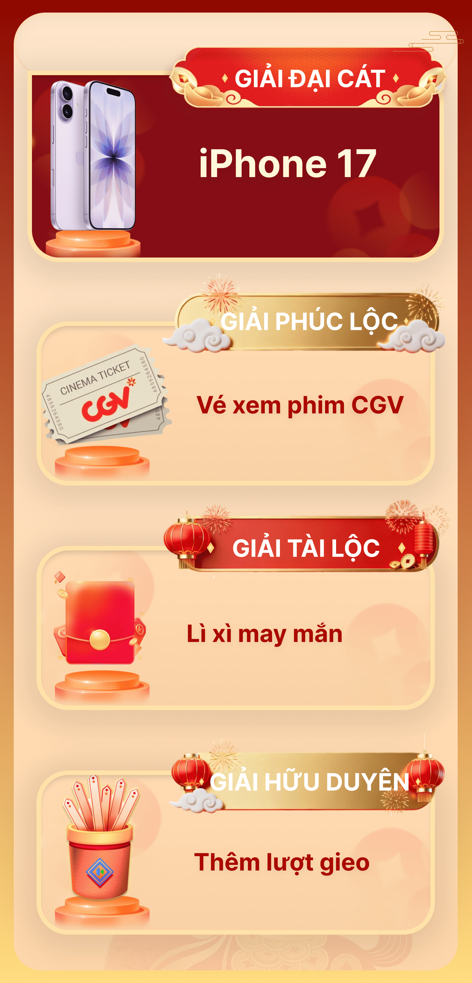 - Sau khi gieo quẻ, khách hàng nhận kết quả ngẫu nhiên theo cơ cấu giải thưởng của chương trình.