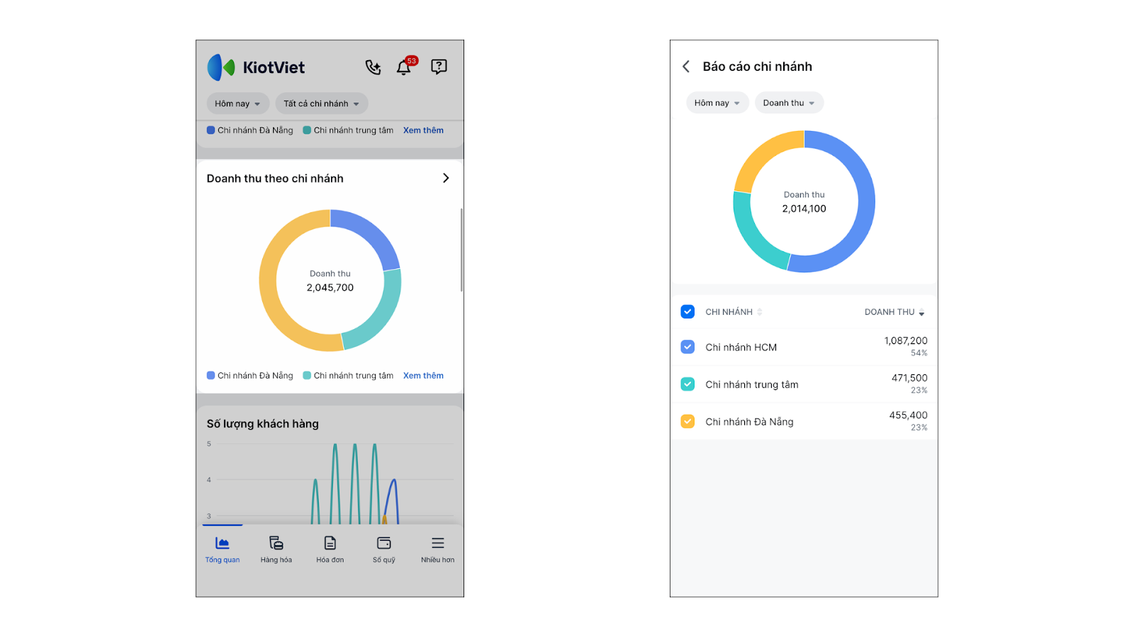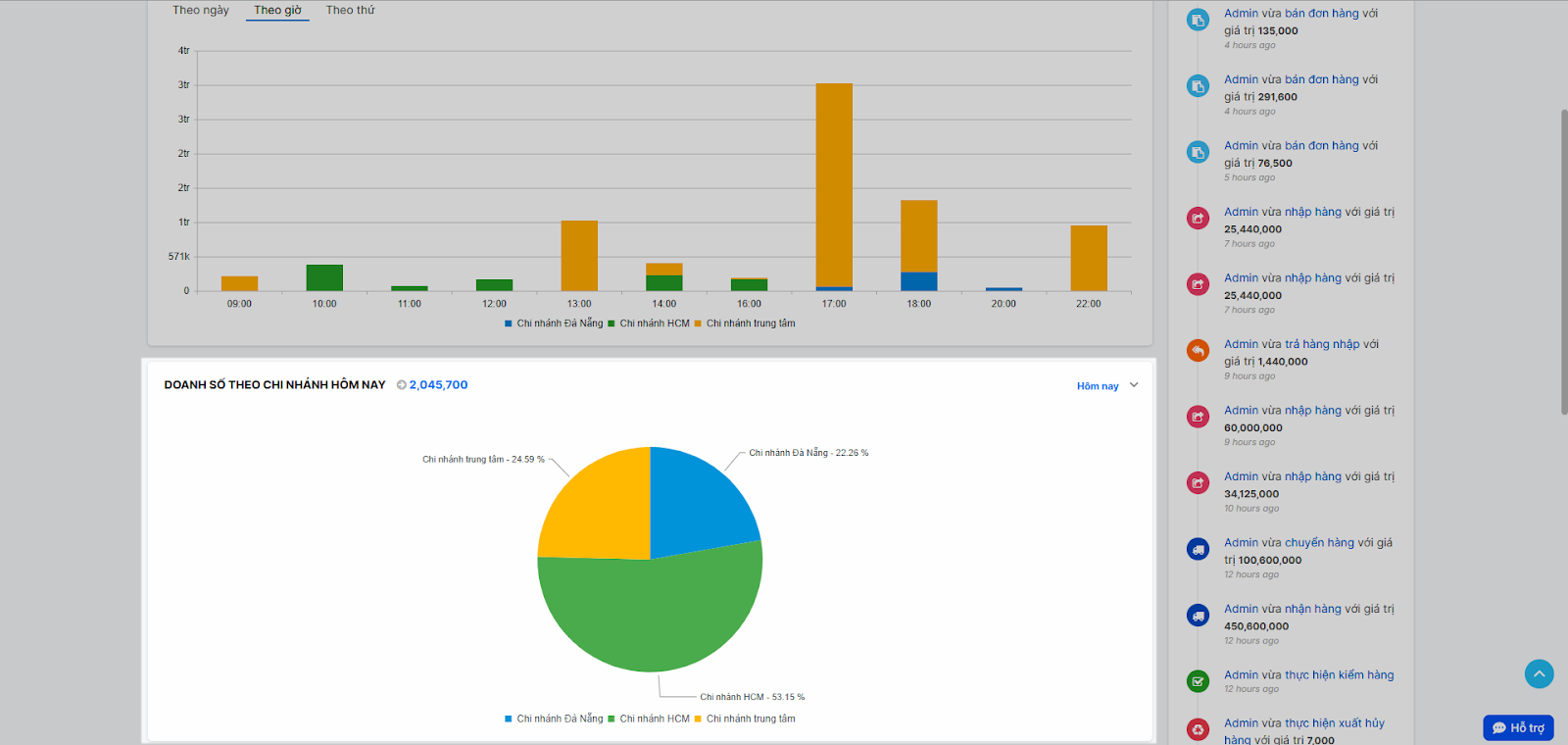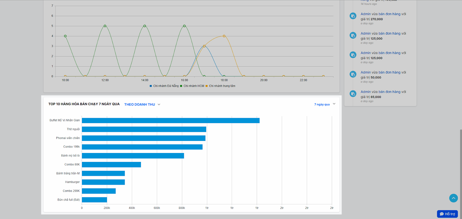 - Nếu có nhiều chi nhánh, hệ thống còn cung cấp biểu đồ Doanh số theo chi nhánh.