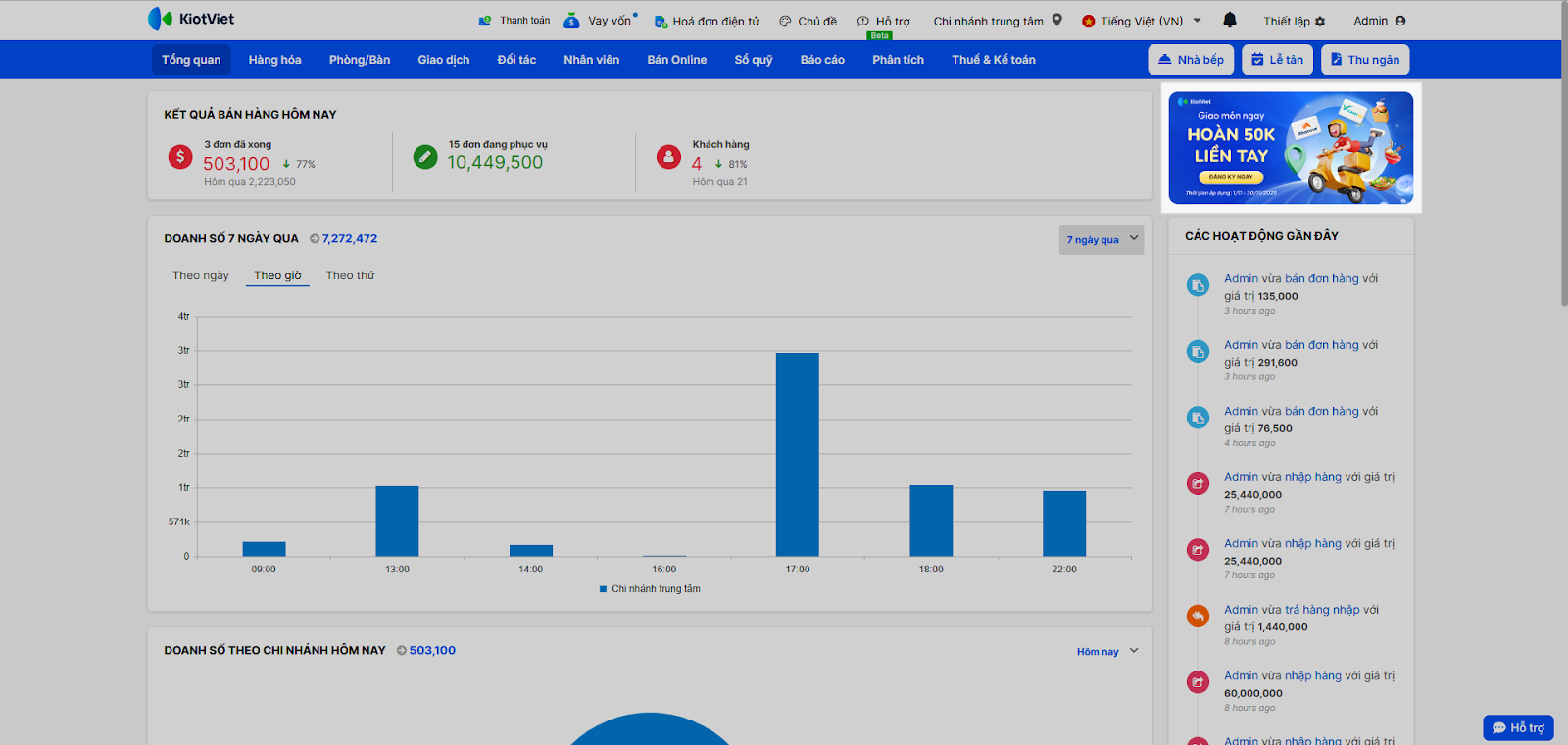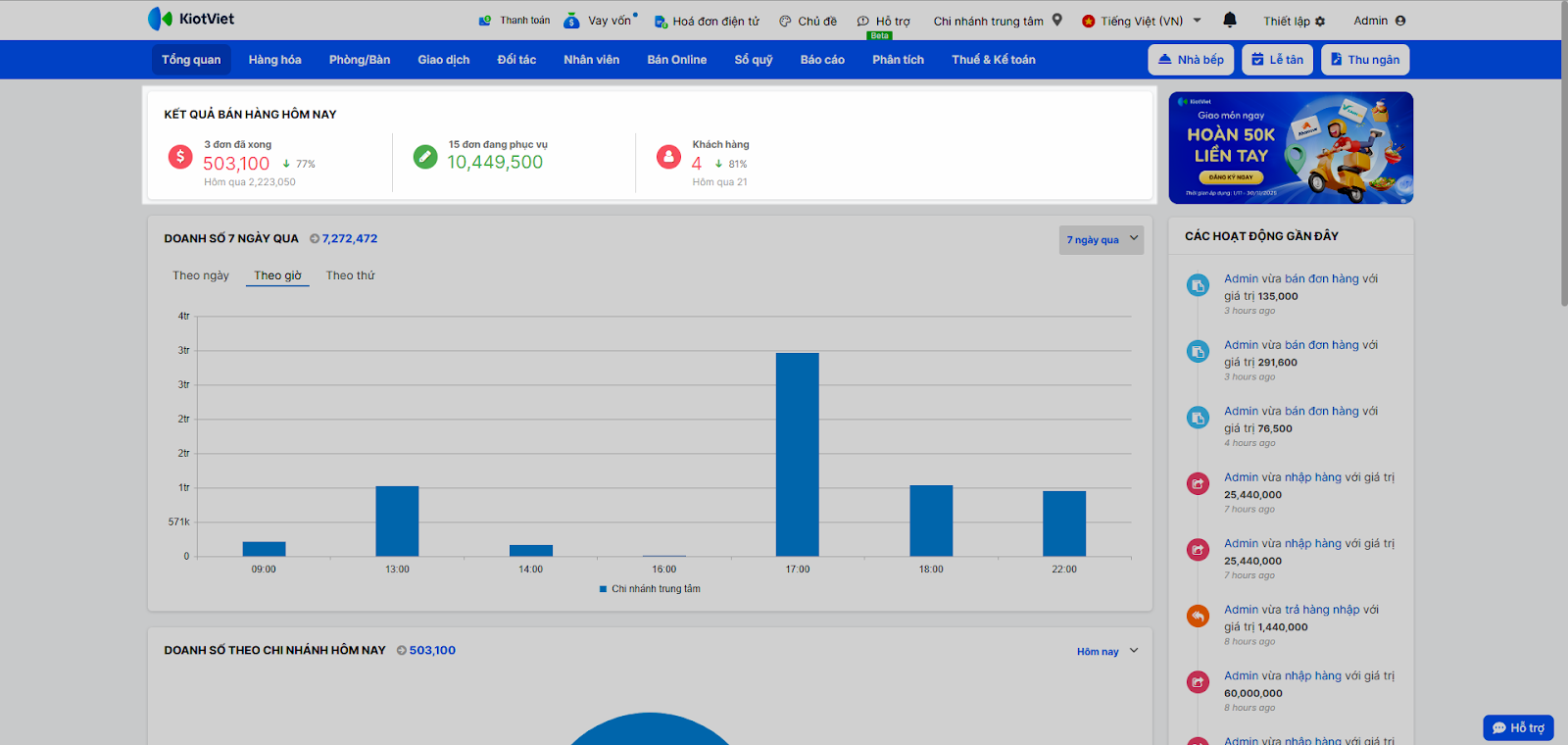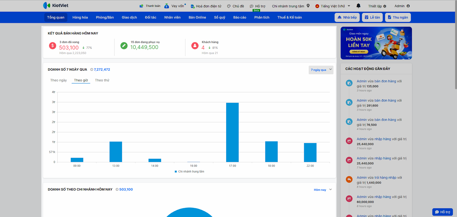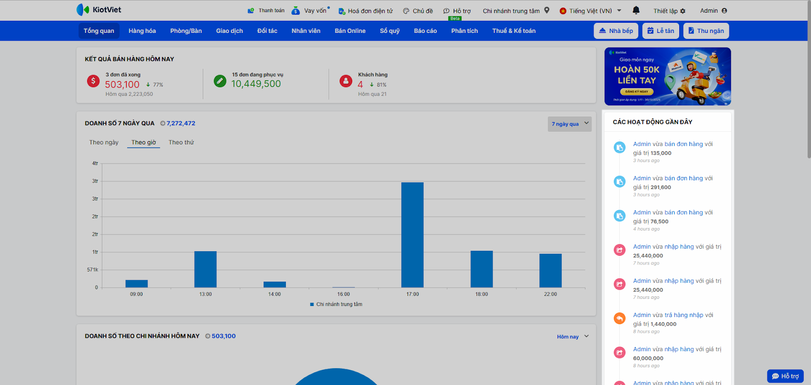 - Nếu có nhiều chi nhánh, hệ thống còn cung cấp biểu đồ Doanh số theo chi nhánh.