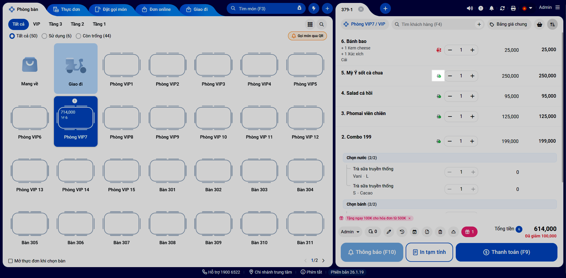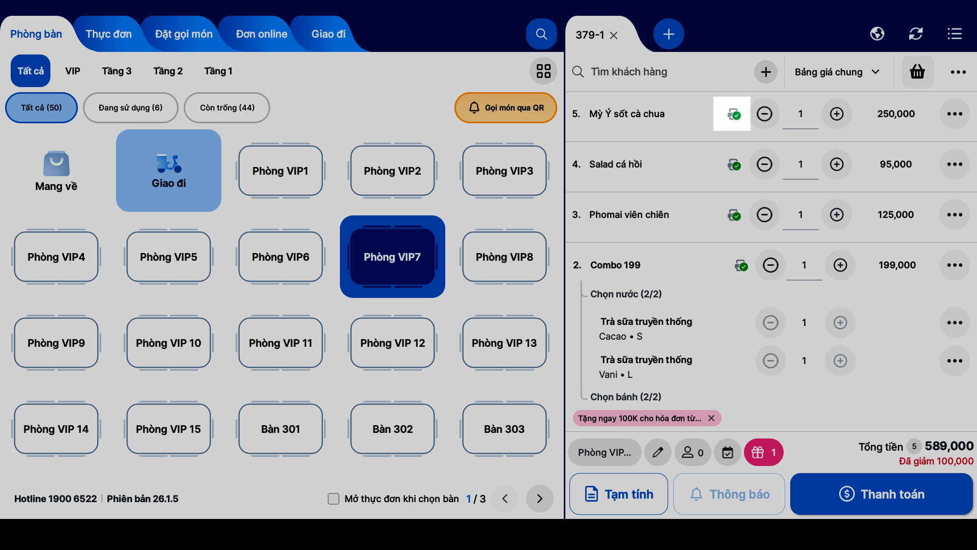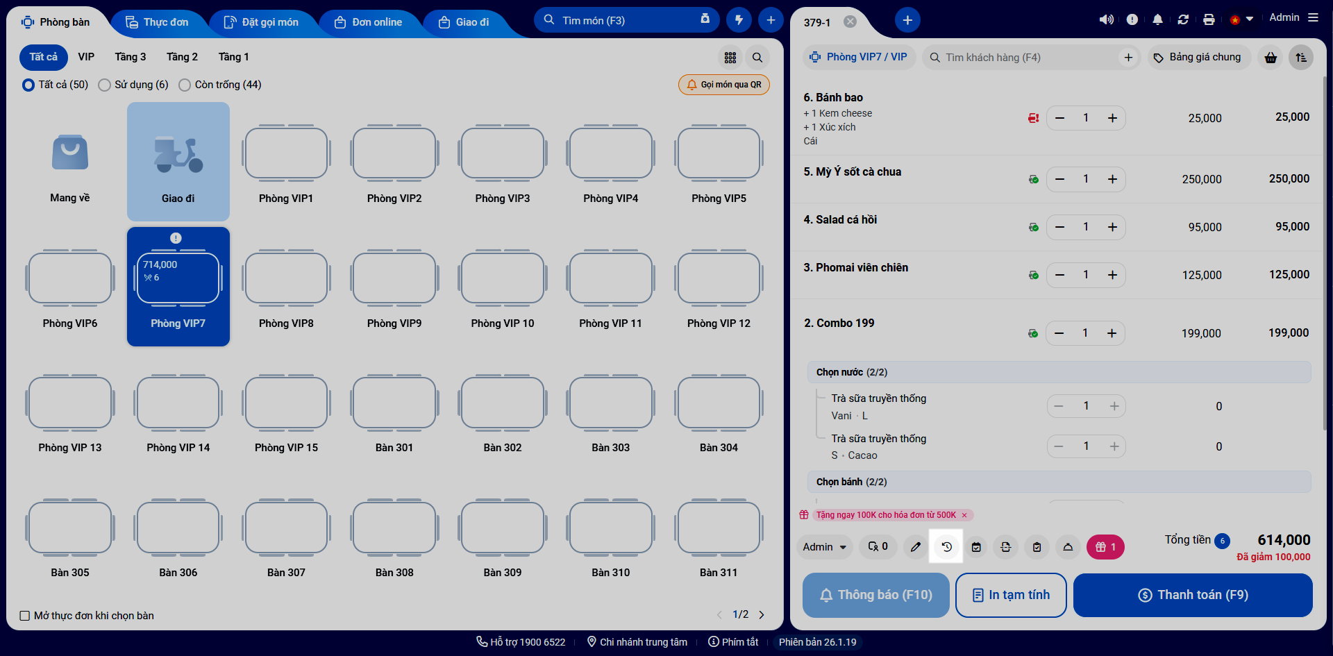 - Nhận thông báo trực tiếp trên Màn hình bếp (KDS).
