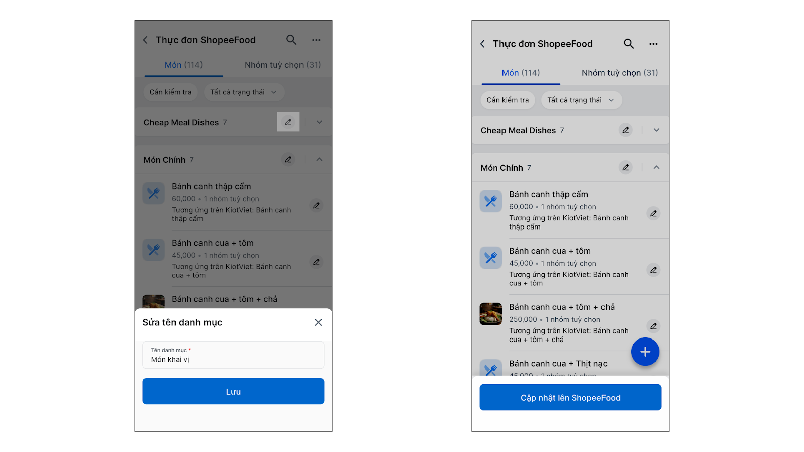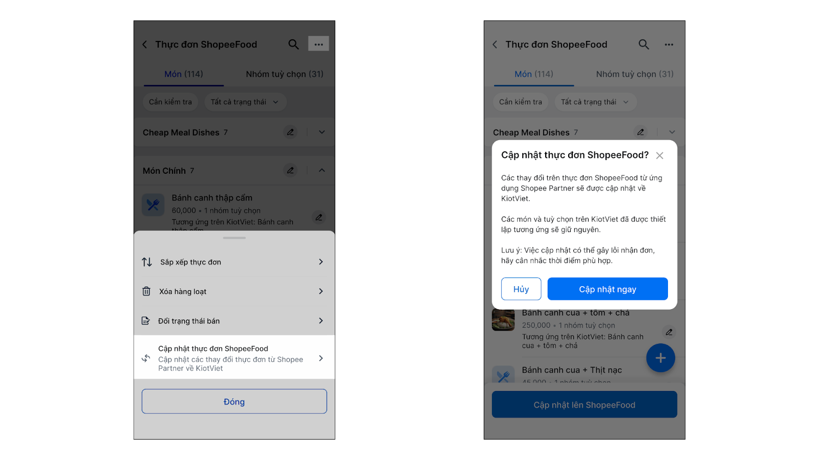 - 5. Cập nhật thực đơn ShopeeFood từ KiotViet