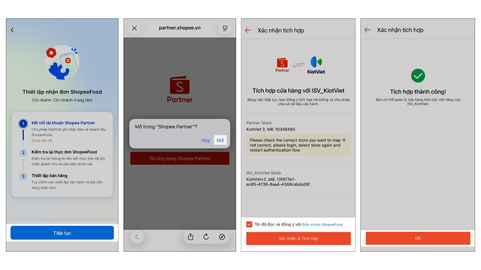 Tình huống: Bạn cần xác nhận tích hợp để KiotViet và Shopee Partner có thể trao đổi dữ liệu.