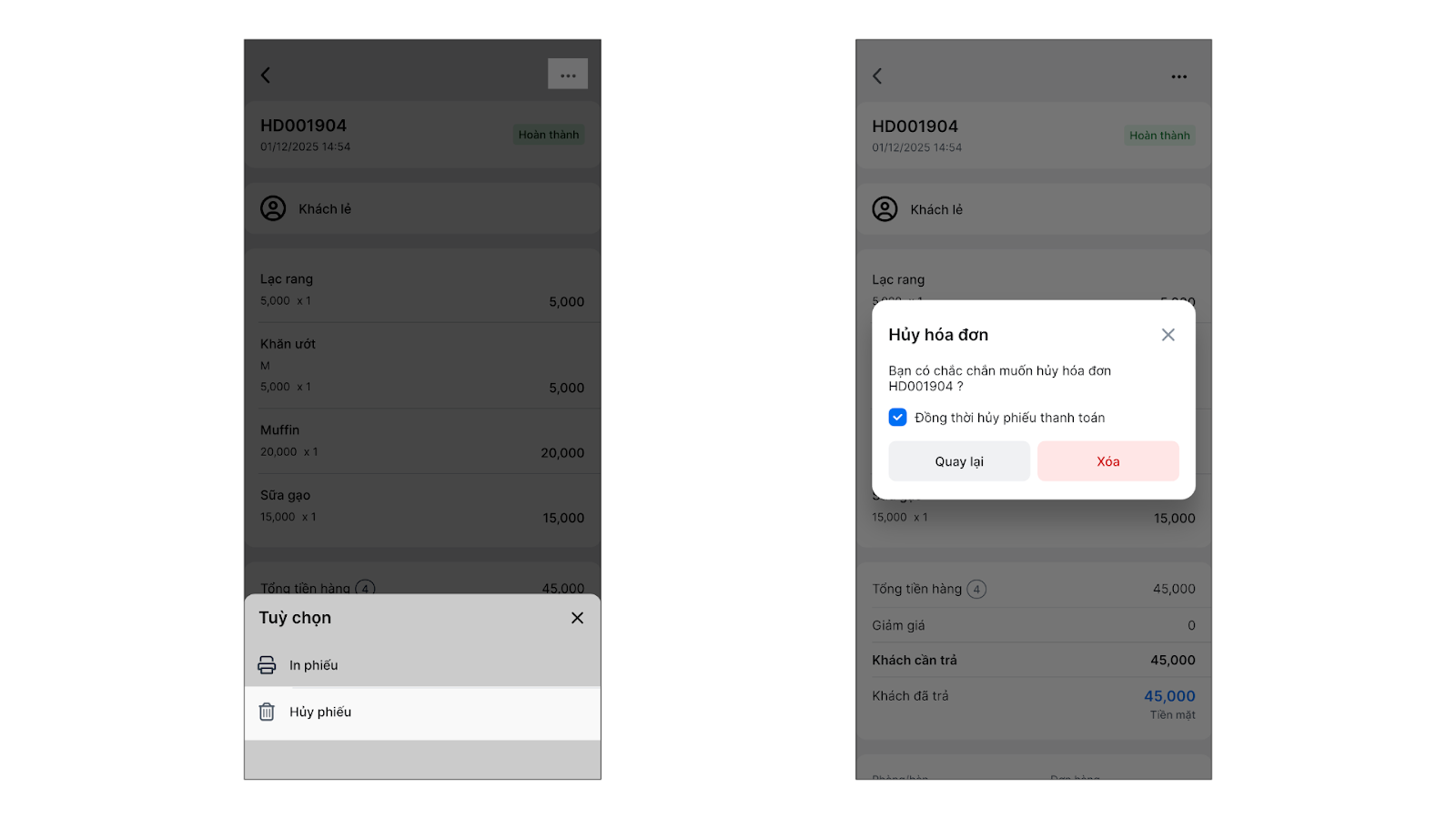 - Hỗ trợ trên di động: Quản lý có thể xem và hủy hóa đơn ngay trên ứng dụng di động mà không cần mở máy tính.