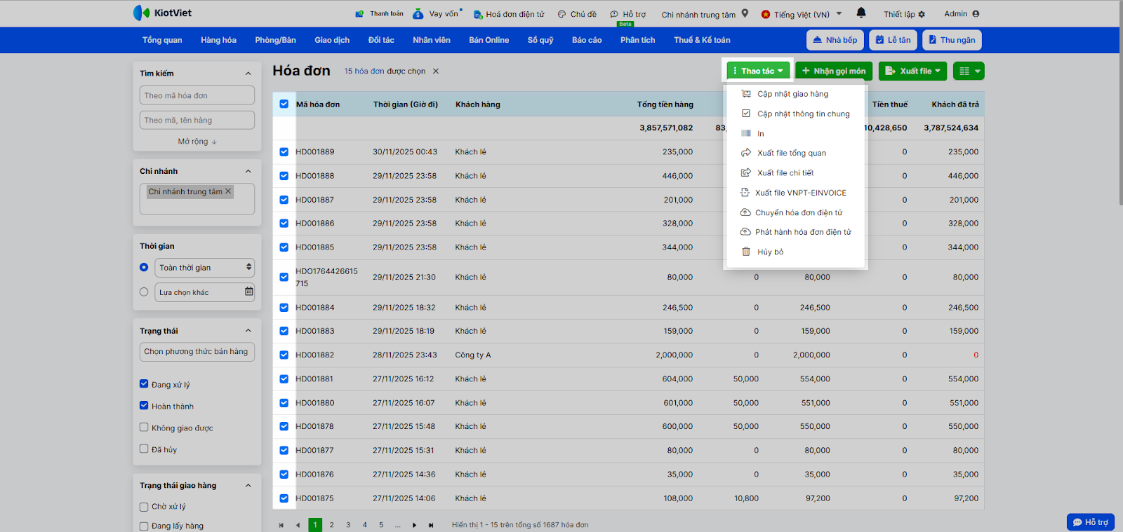 5. Thao tác trên nhiều hóa đơn cùng lúc
