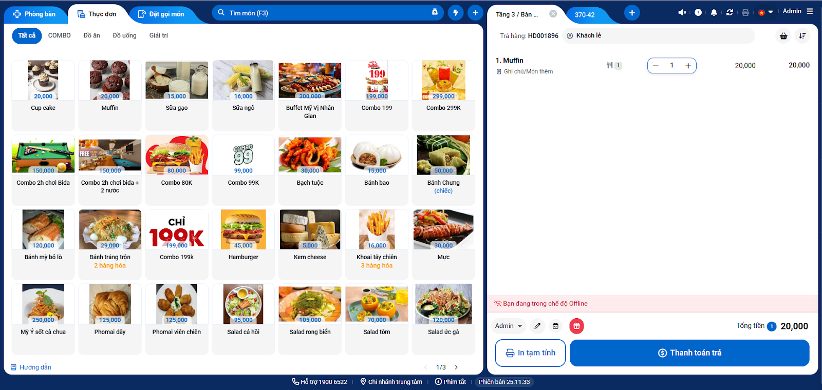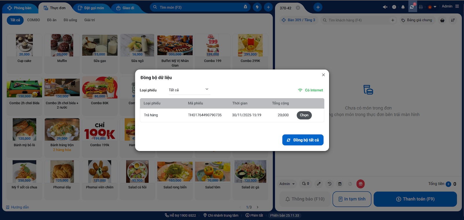 - Khi có kết nối Internet trở lại, bạn nhấn vào nút Đồng bộ dữ liệu trên màn hình Thu ngân.