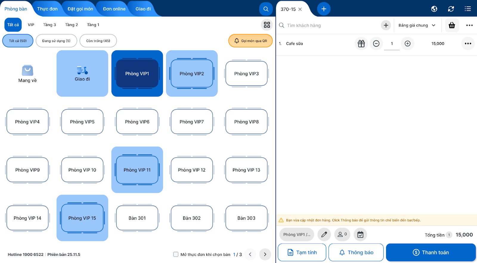 - Quản lý chuyên nghiệp: Hỗ trợ các nghiệp vụ phức tạp như quản lý nhiều đơn trên cùng một bàn.