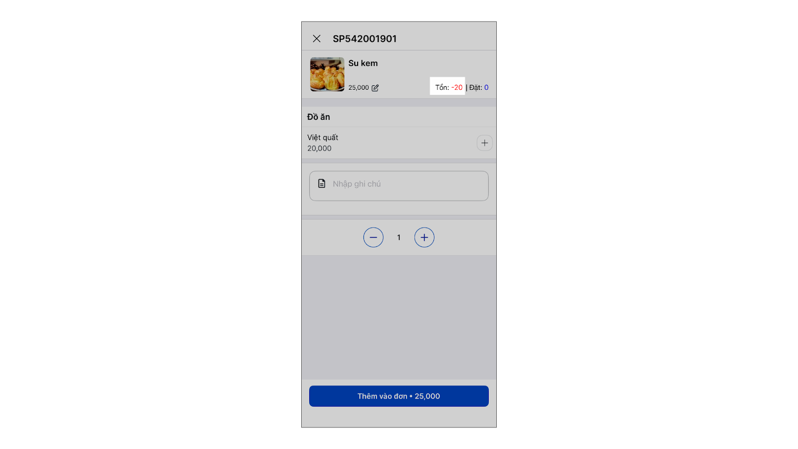 - Tình huống: Khách muốn thay đổi số lượng, thêm ghi chú/topping khi đang order tại quầy.