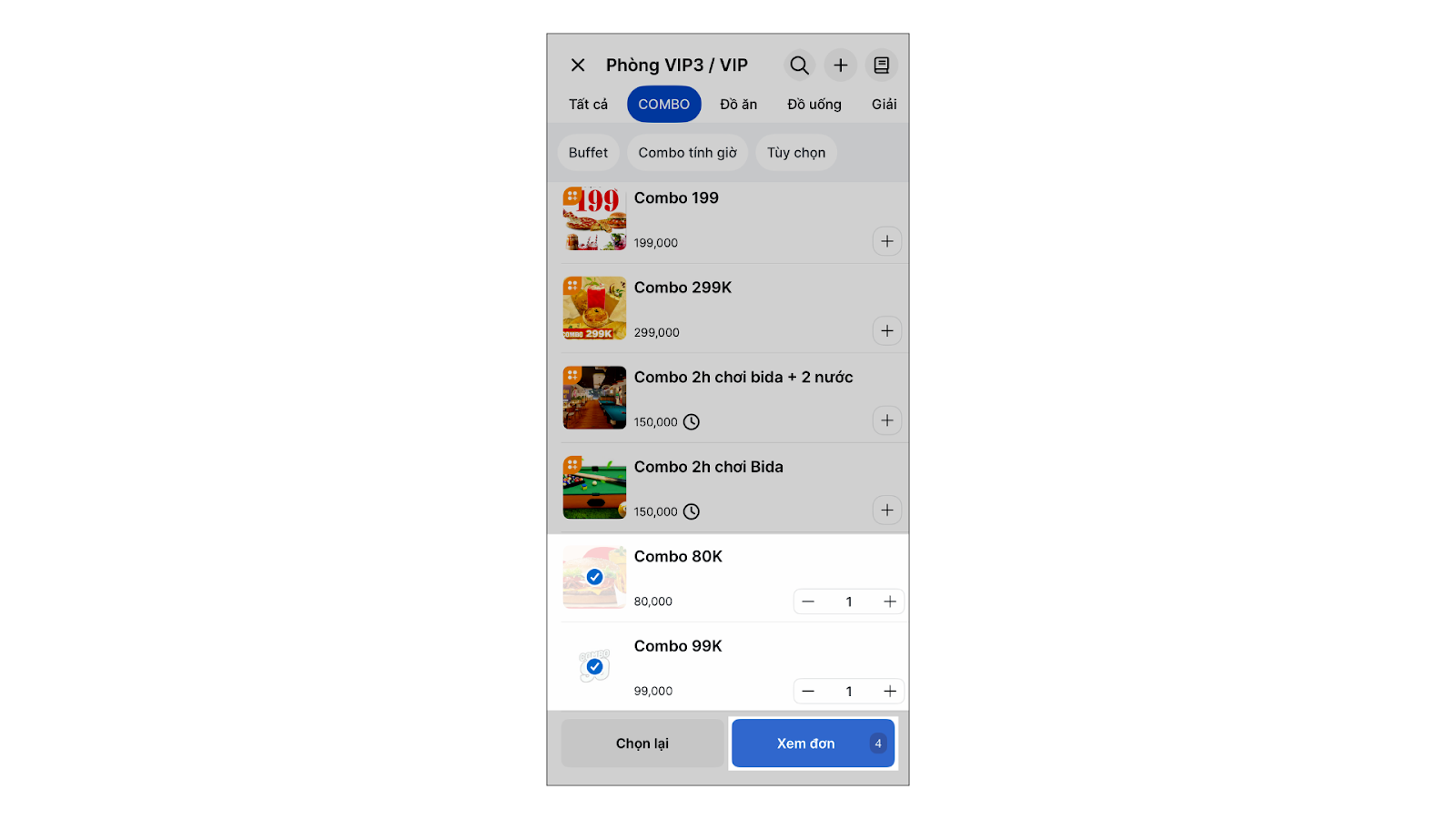 - Sau khi chọn xong các món, chạm Xem đơn.