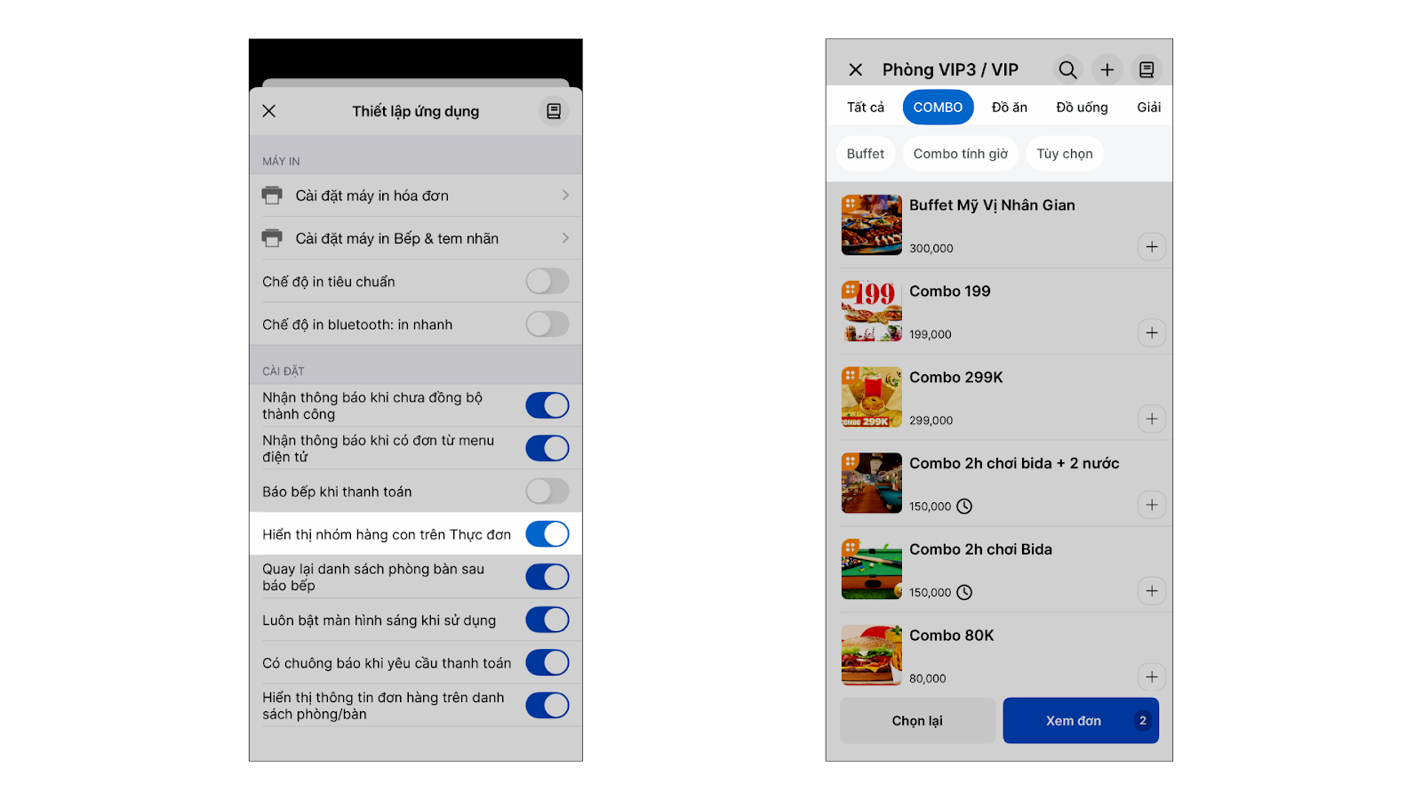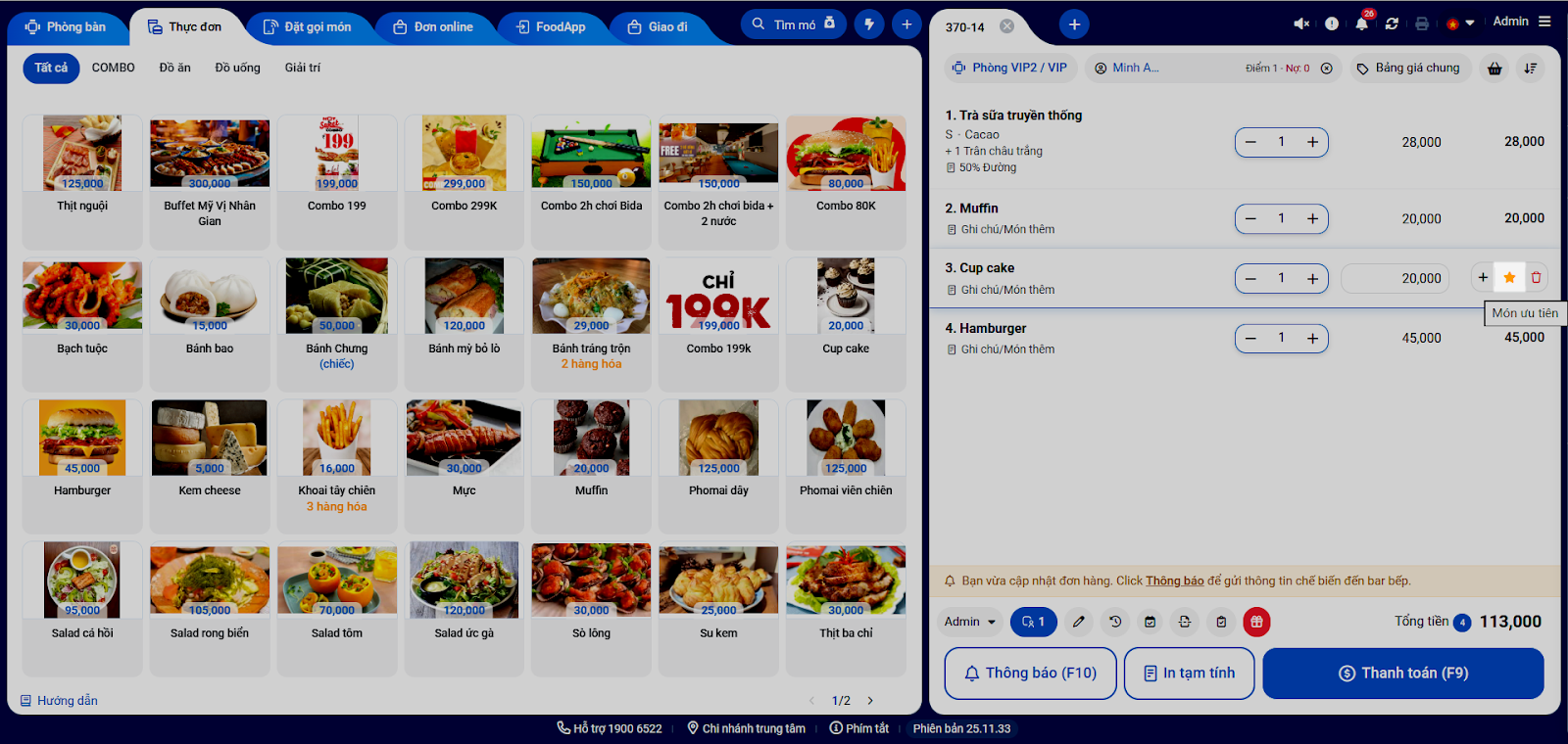 - Tối ưu vận hành: Hỗ trợ đặt ưu tiên chế biến cho các món quan trọng, giúp bếp/bar nắm bắt và thực hiện đúng thứ tự mong muốn của khách.
