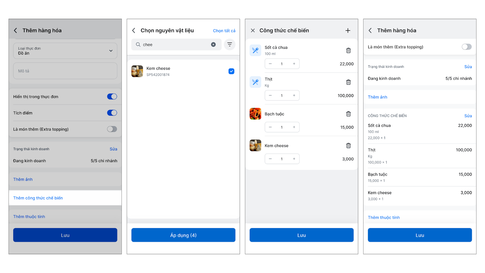 - Lưu ý: Hệ thống hỗ trợ thành phần của hàng chế biến tối đa 2 cấp.