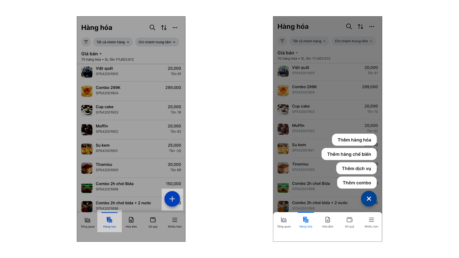 - Chạm vào biểu tượng dấu (+) và chọn loại hàng hóa là Hàng chế biến.
