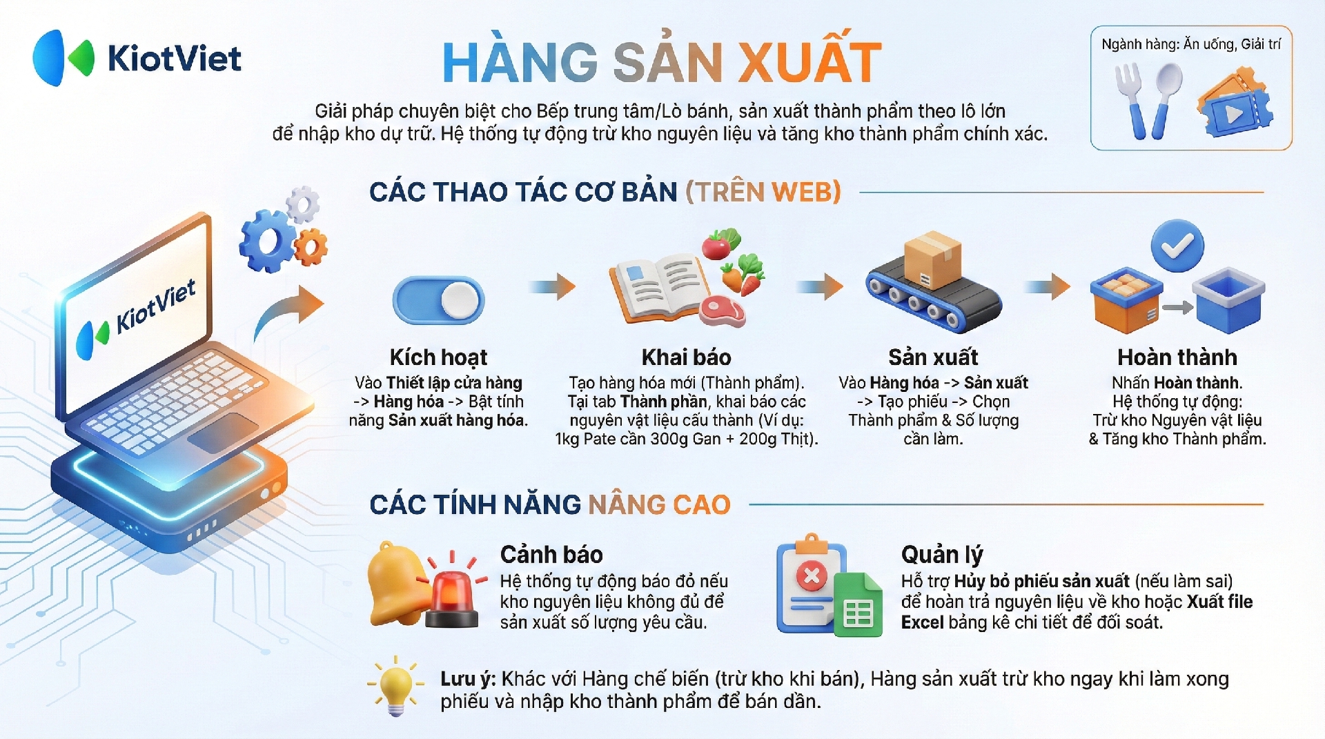 Lợi ích nổi bật của tính năng Hàng sản xuất trên KiotViet: