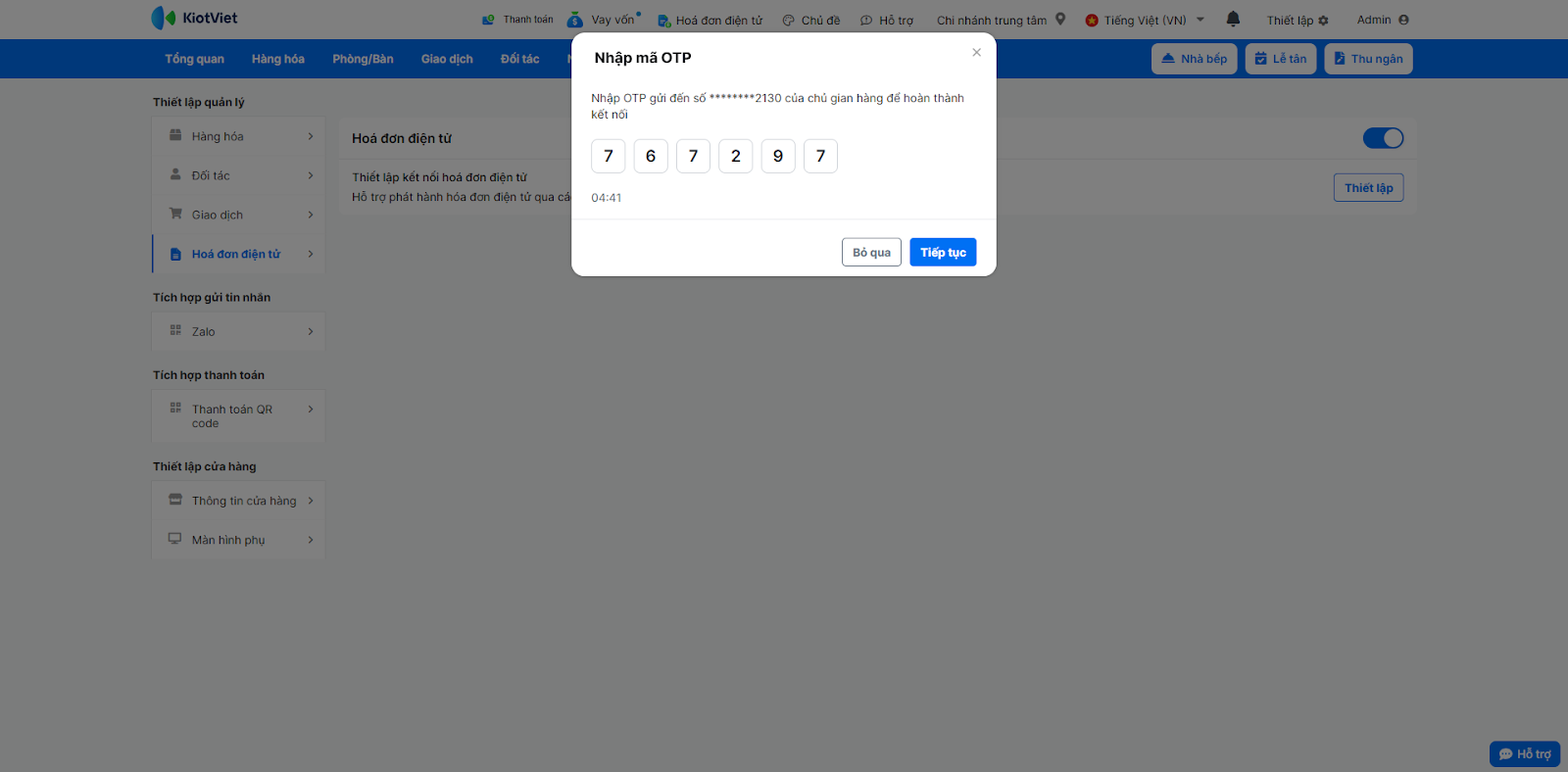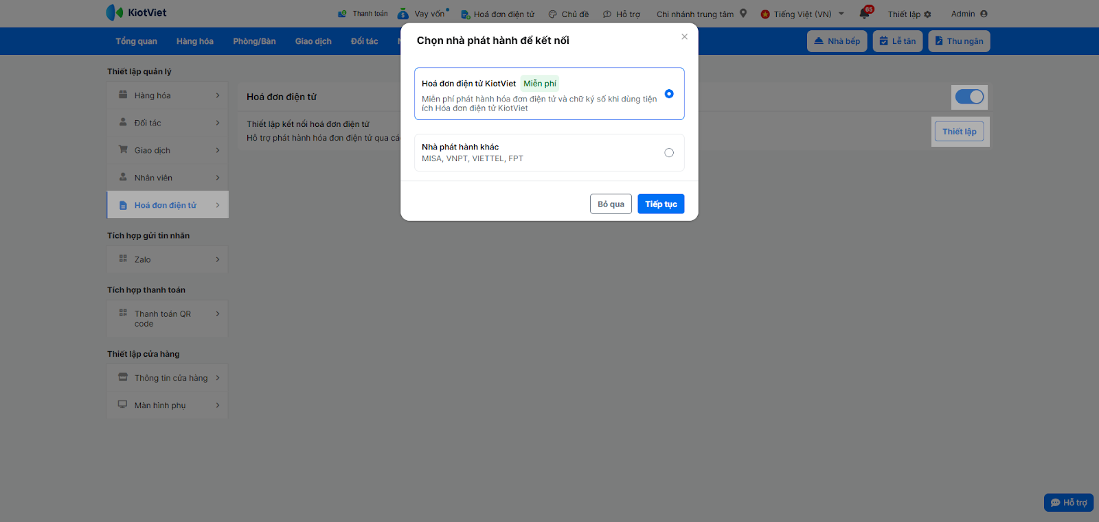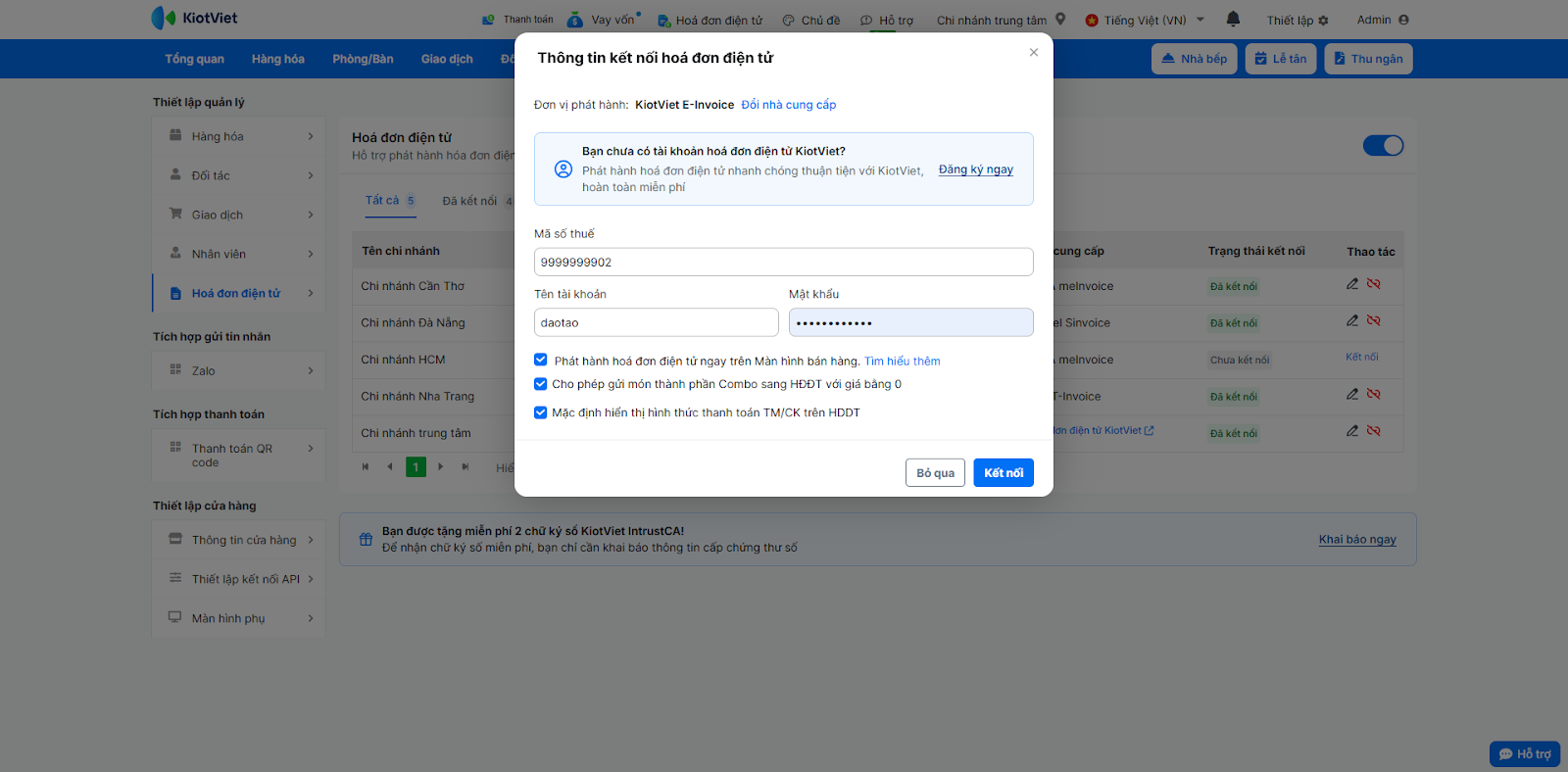 Kết nối Phần mềm QLBH và Phần mềm HĐĐT KiotViet