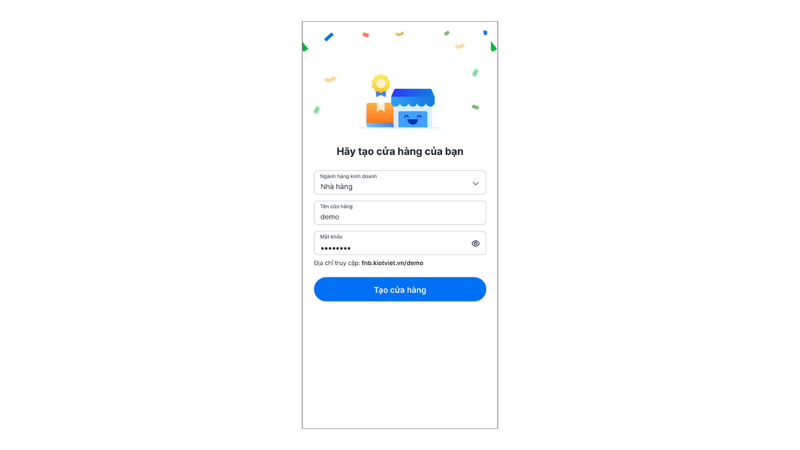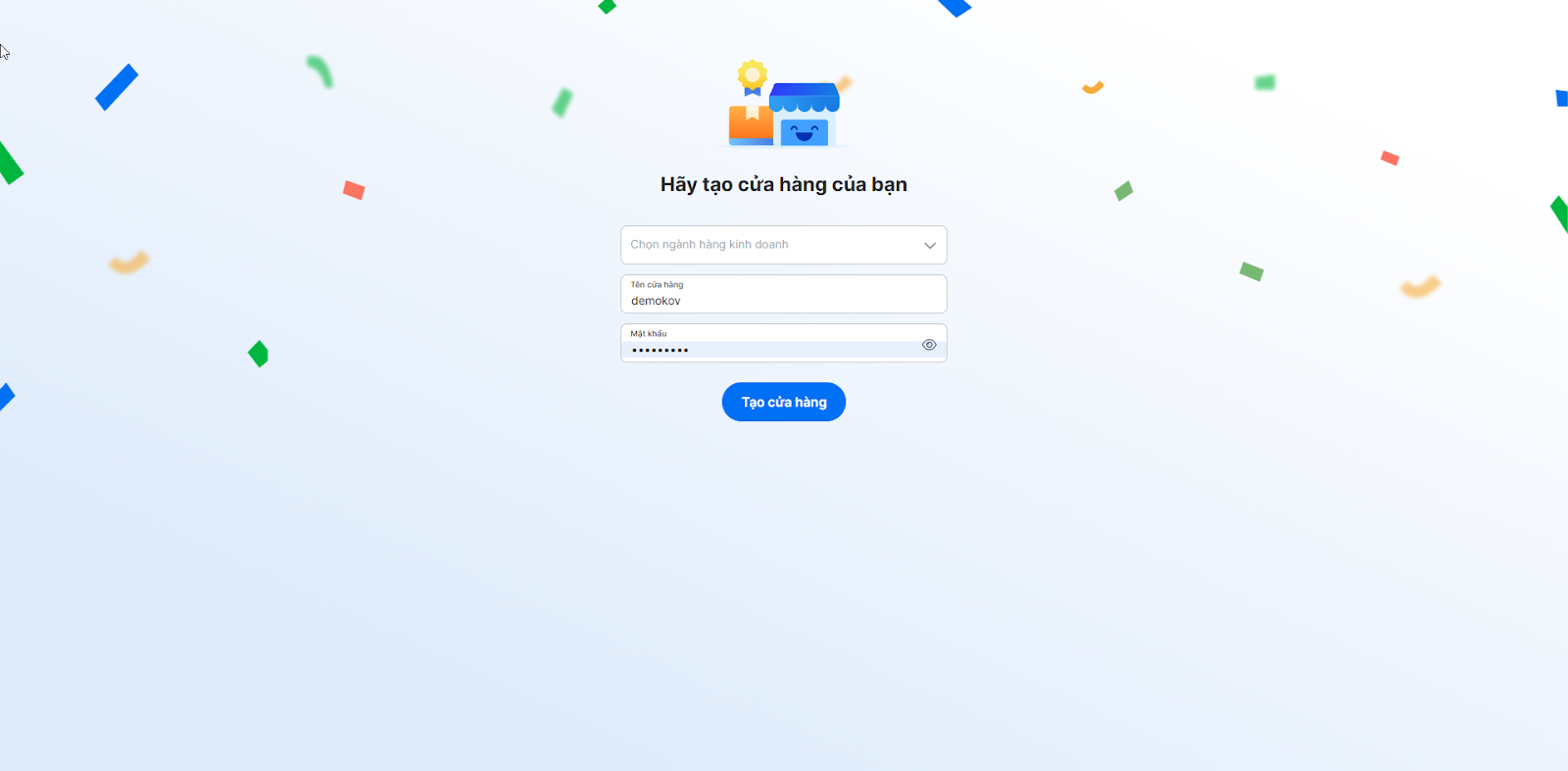 - Nhấn Tạo cửa hàng