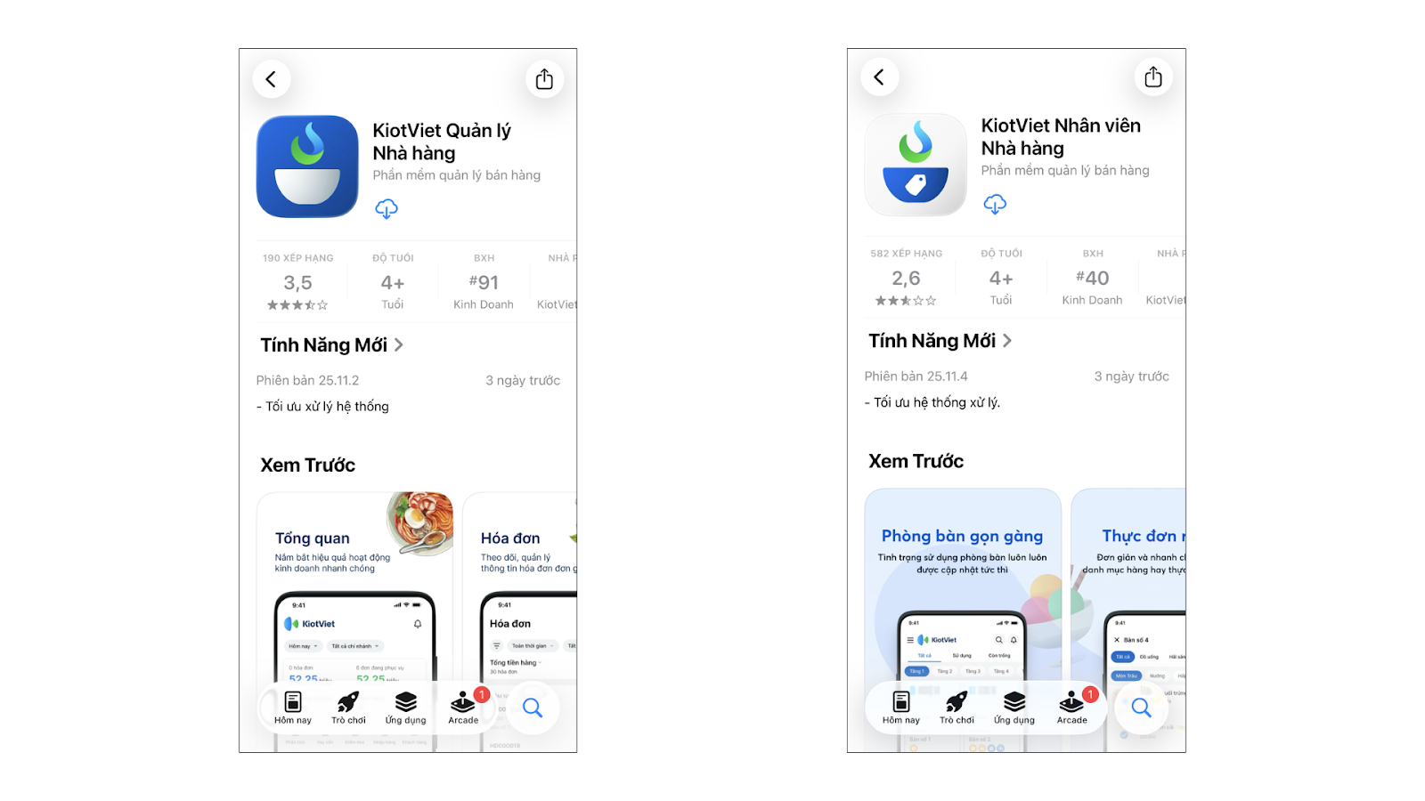 - Tải ứng dụng KiotViet Quản lý Nhà hàng hoặc KiotViet Nhân viên Nhà hàng từ App Store hoặc Google Play.