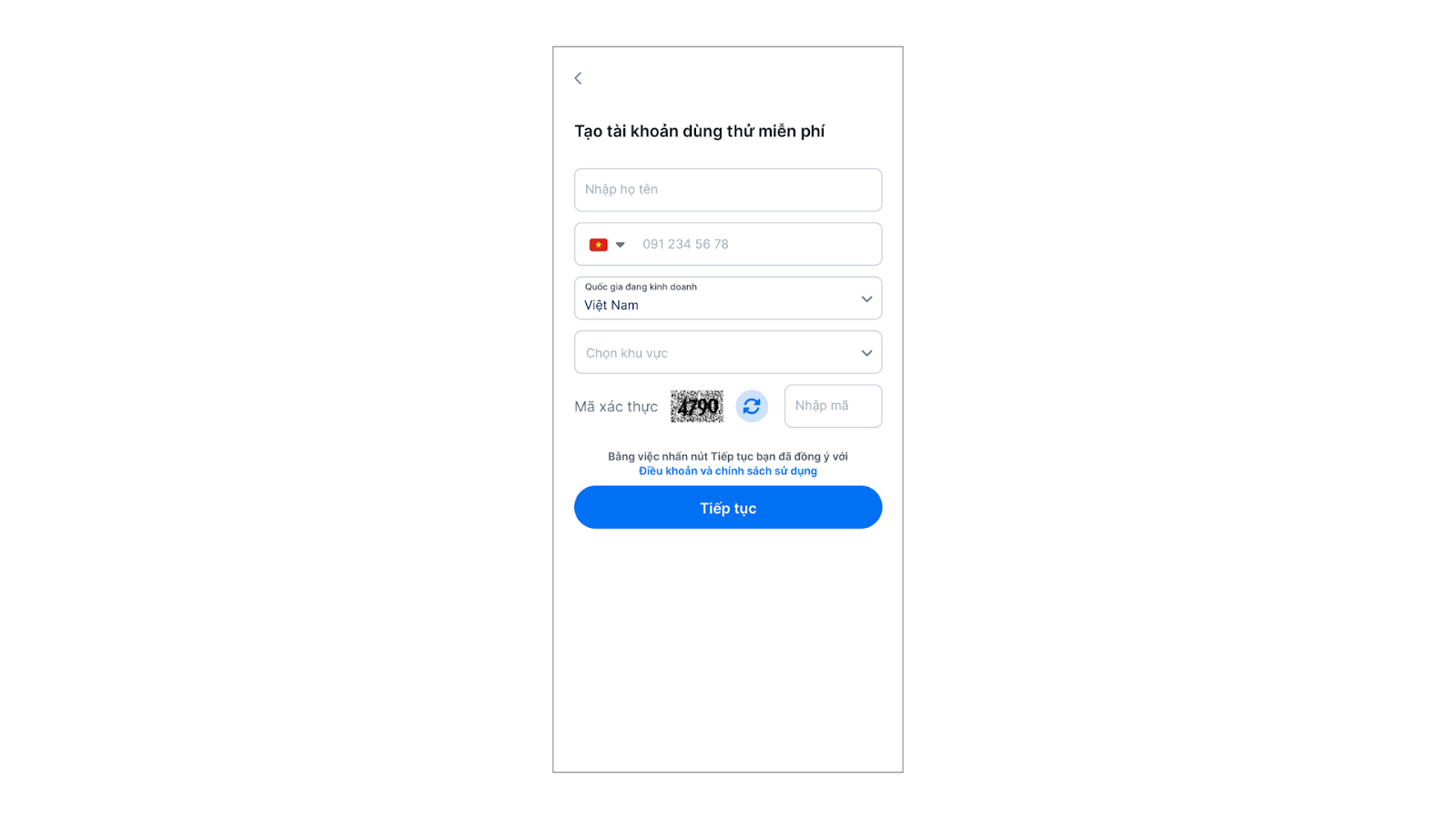 Tình huống: Bạn muốn đăng ký tài khoản KiotViet thông qua ứng dụng KiotViet trên điện thoại di động.