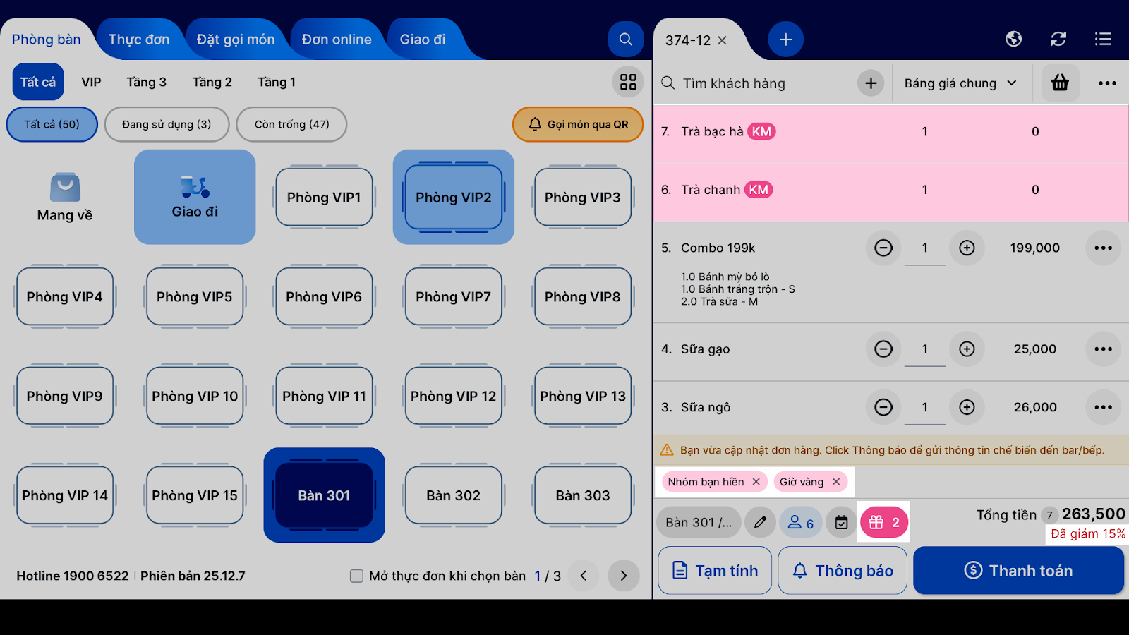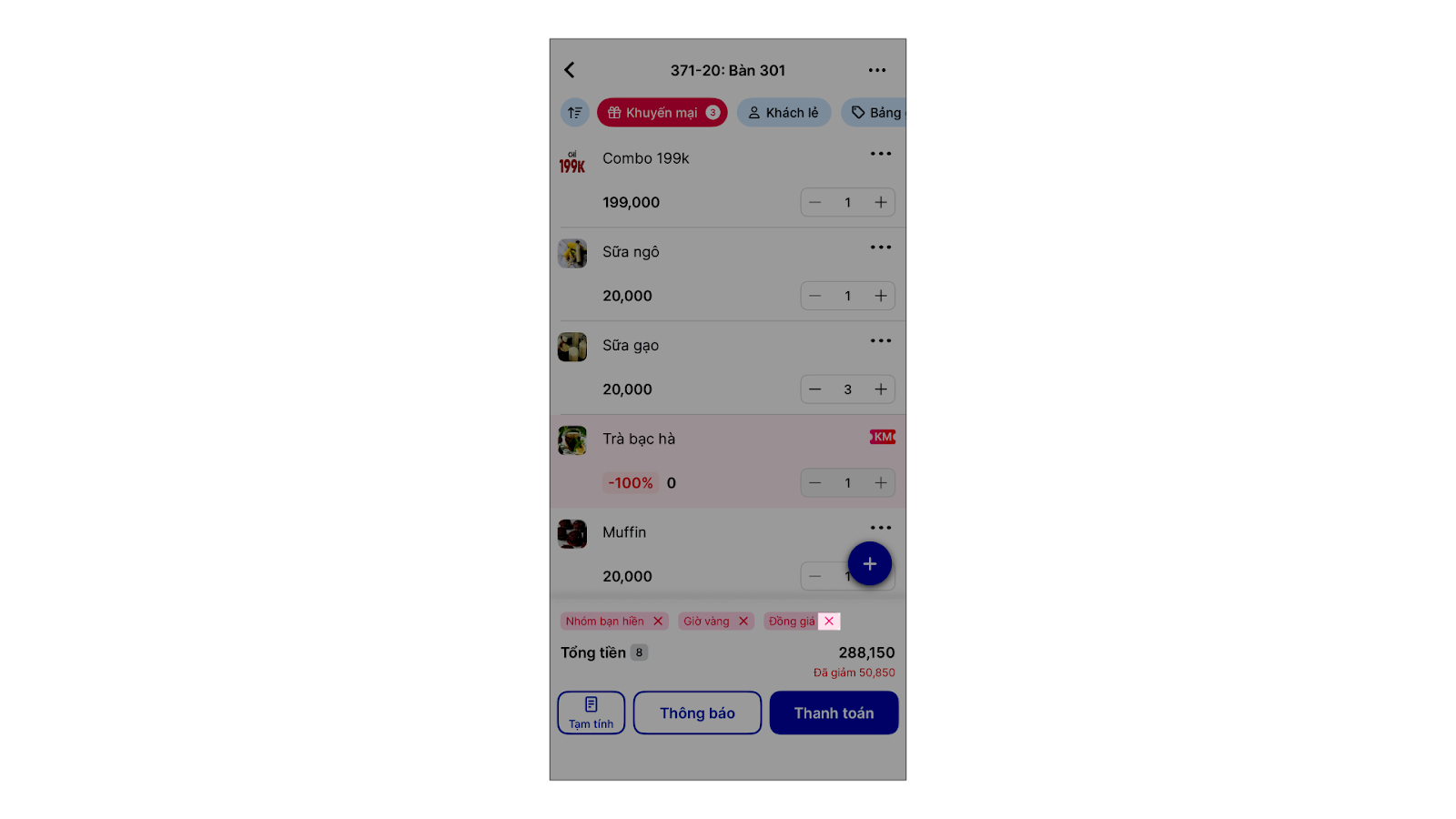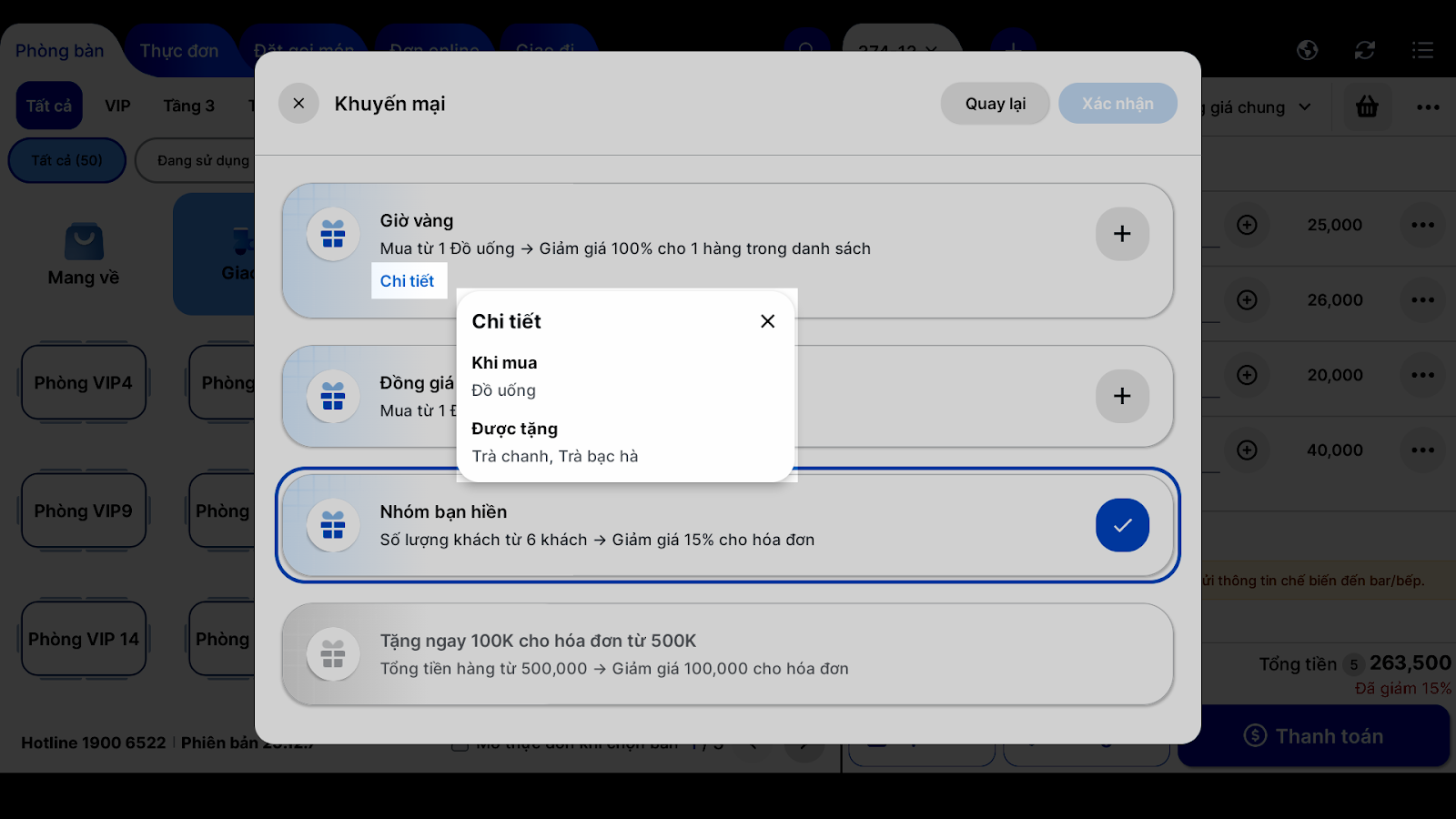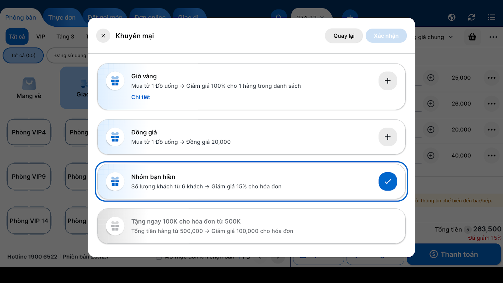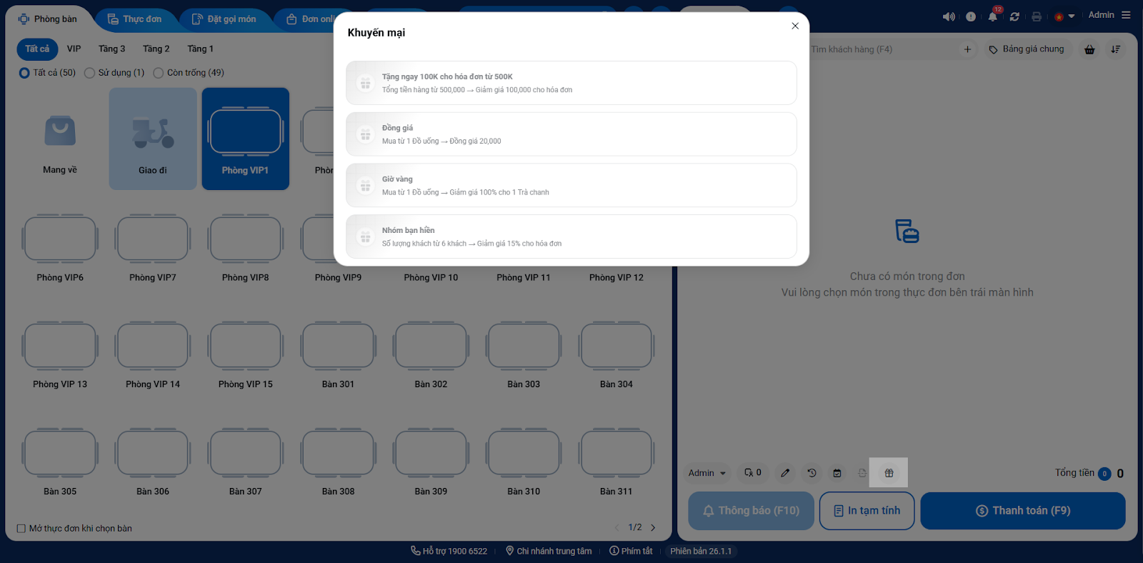 - Tình huống: Khi bạn đang tạo hóa đơn cho khách và nhận thấy đơn hàng này đủ điều kiện để nhận một ưu đãi đang diễn ra.