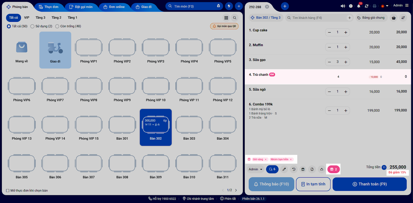 - Tích hợp trực tiếp: Các chương trình khuyến mại được tự động nhận diện và áp dụng trên màn hình Thu ngân khi đủ điều kiện, giúp nhân viên thao tác nhanh chóng và chính xác.