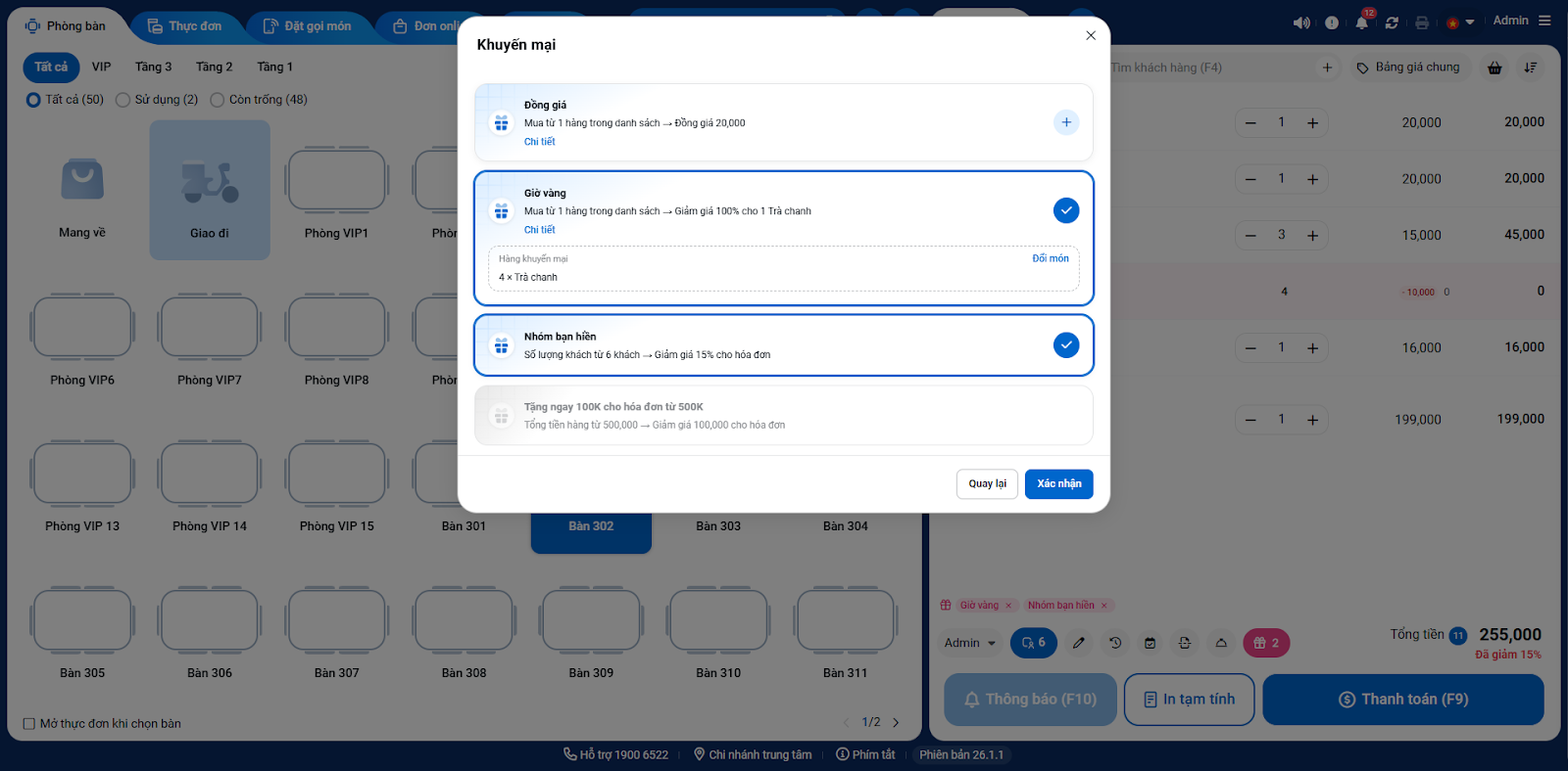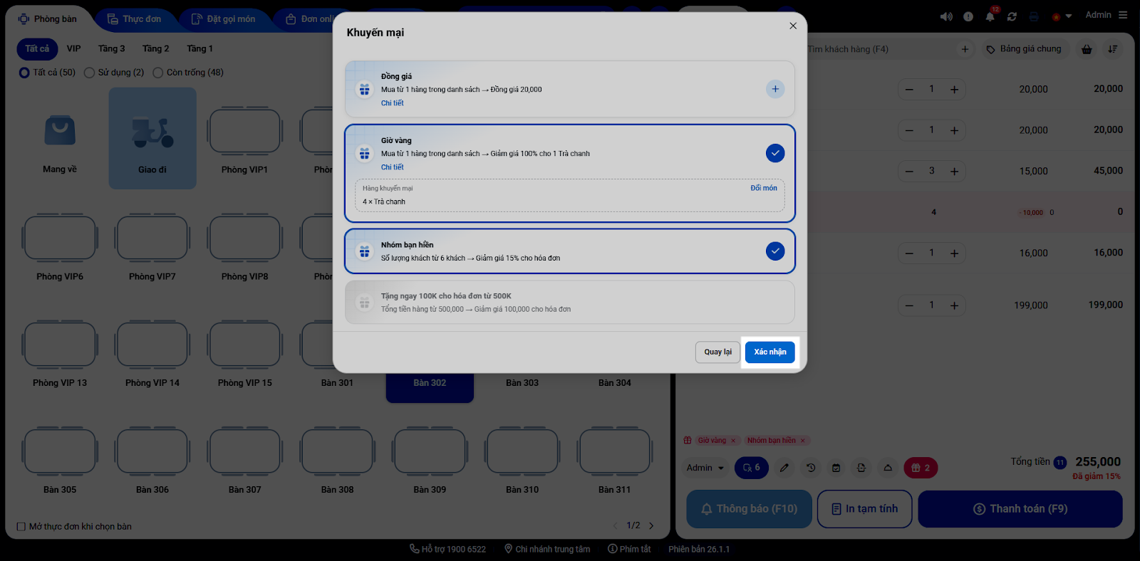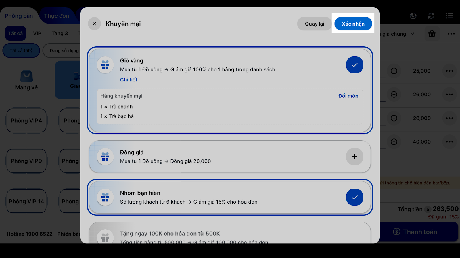 6. Chạm Xác nhận để ghi nhận khuyến mại trên đơn.