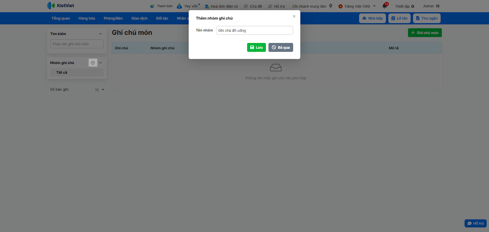 - Tạo nhóm ghi chú: Nhấn Thêm nhóm ghi chú và điền tên nhóm (ví dụ: Ghi chú đồ uống).