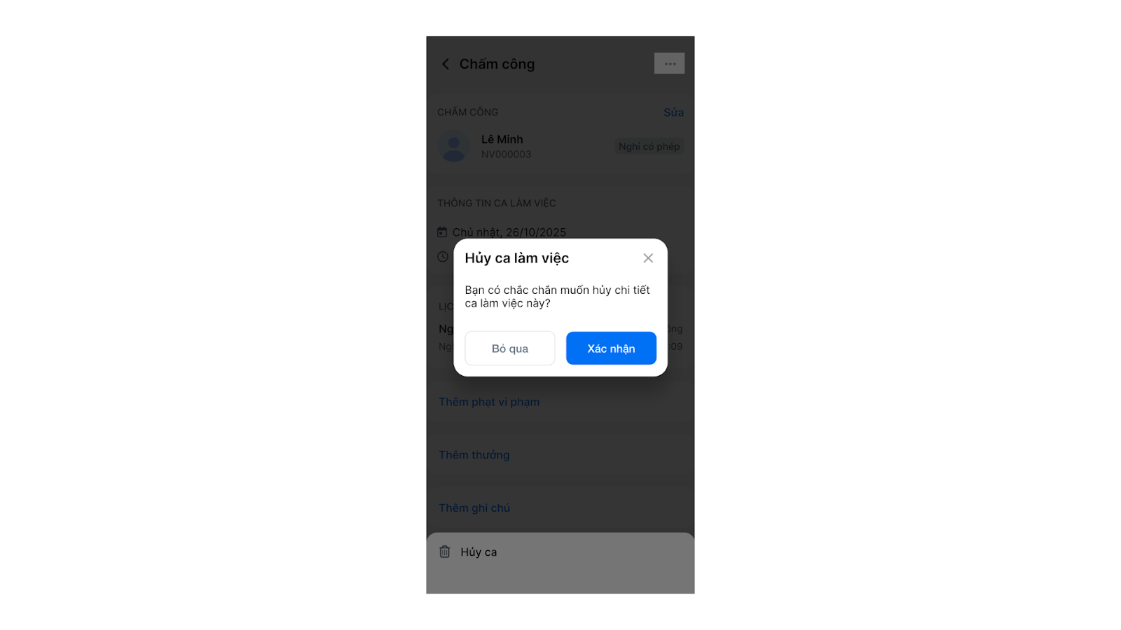 3. Hủy ca làm việc