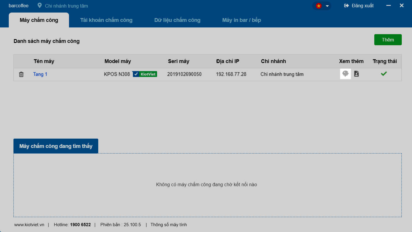 Tích hợp dữ liệu từ máy chấm công vân tay vào KiotViet.