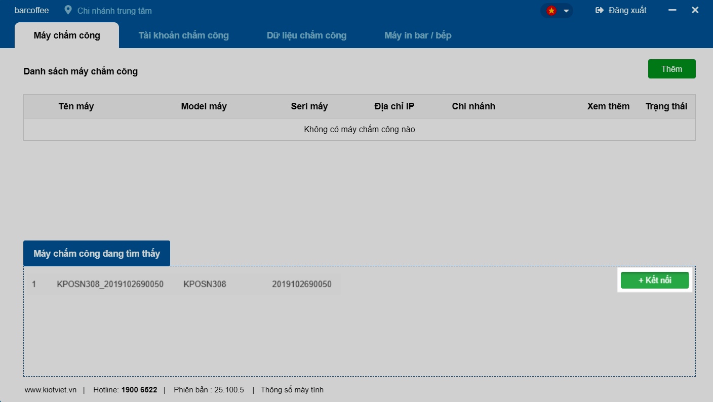 - Sau khi kết nối và gán nhân viên, ứng dụng sẽ tự động đồng bộ dữ liệu chấm công từ máy về KiotViet.