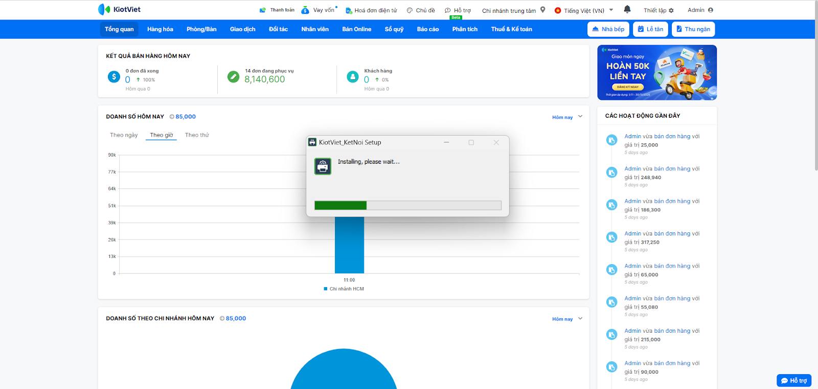 - Chạy file cài đặt KiotViet_Ketnoi.exe trên máy tính (cần quyền admin).
