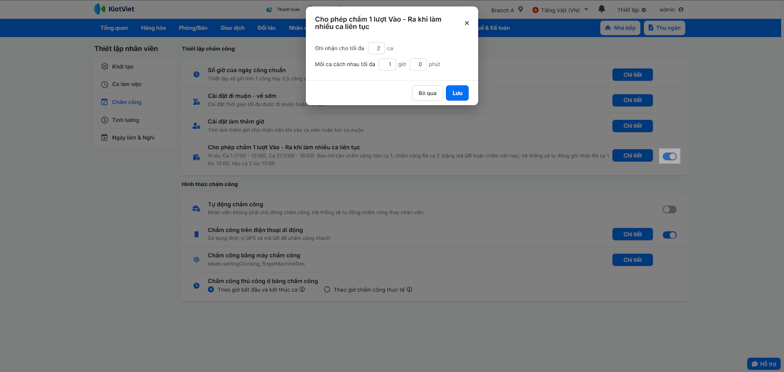 Bạn có thể tùy chỉnh các quy tắc chấm công để phù hợp với quy định của nhà hàng/quán.