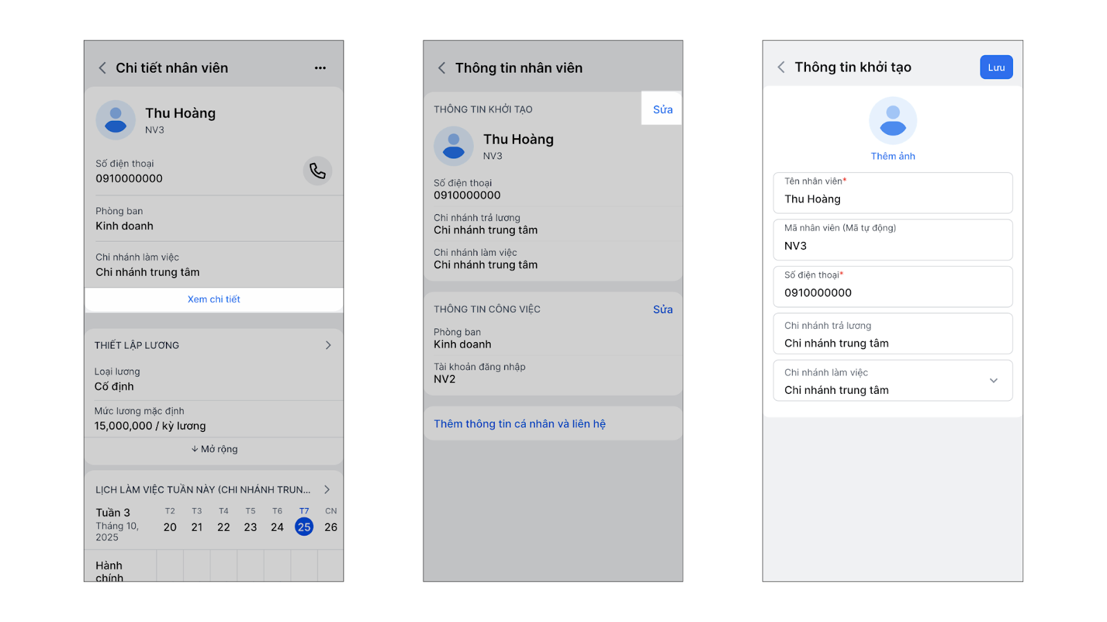 - Tình huống: Một nhân viên thay đổi thông tin cá nhân (ví dụ: số điện thoại, phòng ban) và bạn cần cập nhật trên hệ thống.