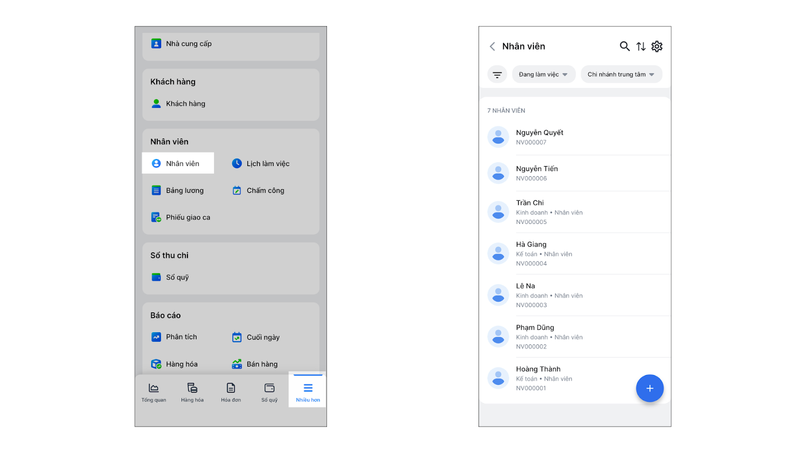 - Trên menu Nhiều hơn, bạn chạm Nhân viên.