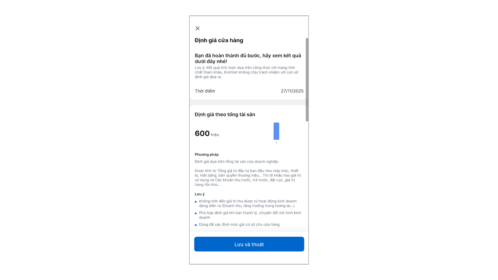 - Tình huống: Khi bạn cần tham khảo giá trị ước tính hiện tại của cửa hàng dựa trên hiệu quả kinh doanh và tài sản để phục vụ cho mục đích chuyển nhượng, kêu gọi đầu tư hoặc đánh giá tăng trưởng.