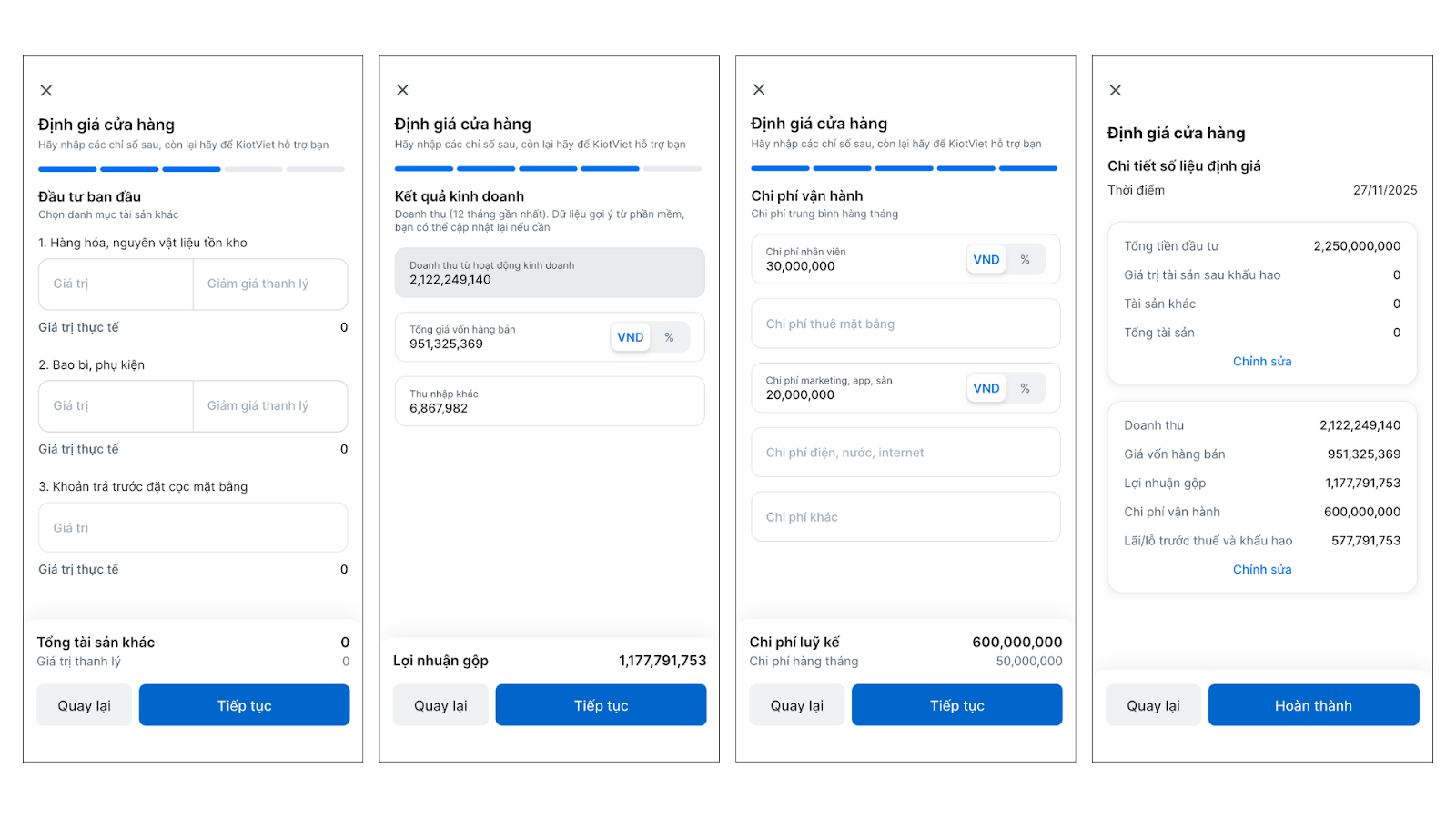 - Hệ thống hiển thị con số giá trị ước tính sơ bộ của cửa hàng.
