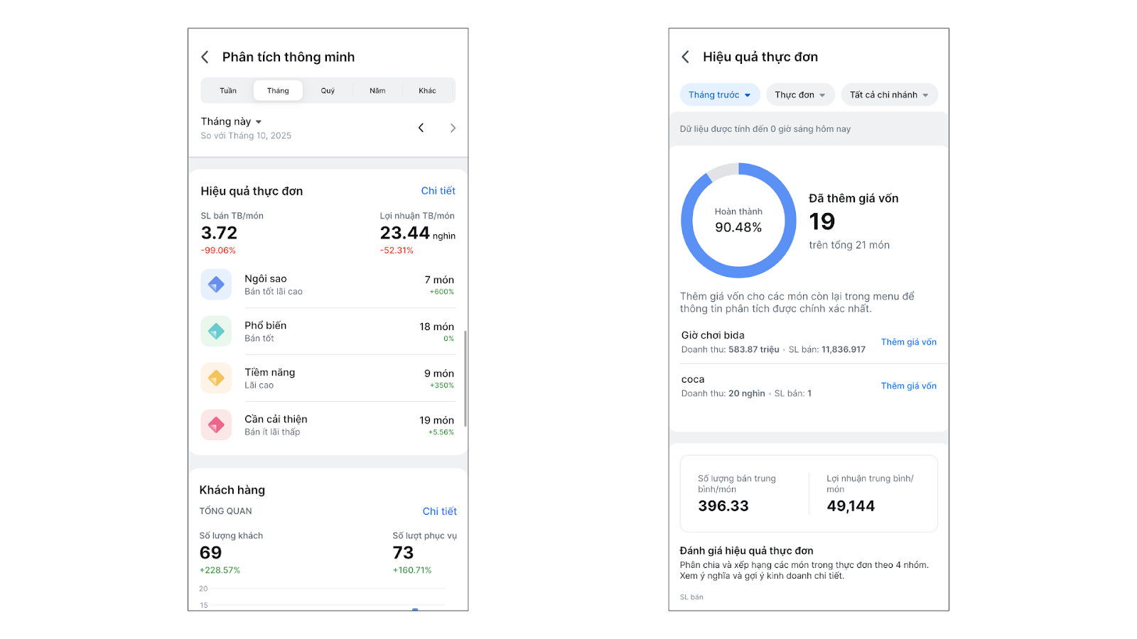 - Tối ưu hóa thực đơn: Giúp chủ cửa hàng và bếp trưởng đánh giá chính xác hiệu quả từng món ăn (doanh thu, lợi nhuận) để xác định món chủ đạo hoặc loại bỏ các món không còn được ưa chuộng.