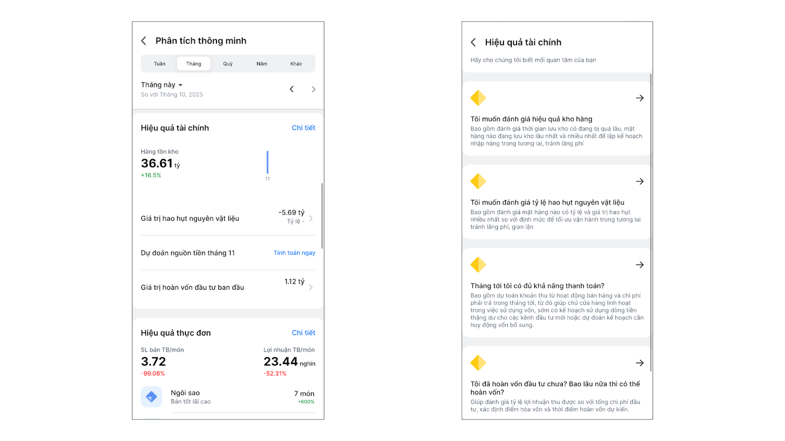 - Tình huống: Khi bạn muốn đánh giá hiệu quả đầu tư và quản lý kho vận, cần kiểm soát mức độ thất thoát hàng hóa hoặc theo dõi tiến độ thu hồi vốn của nhà hàng.