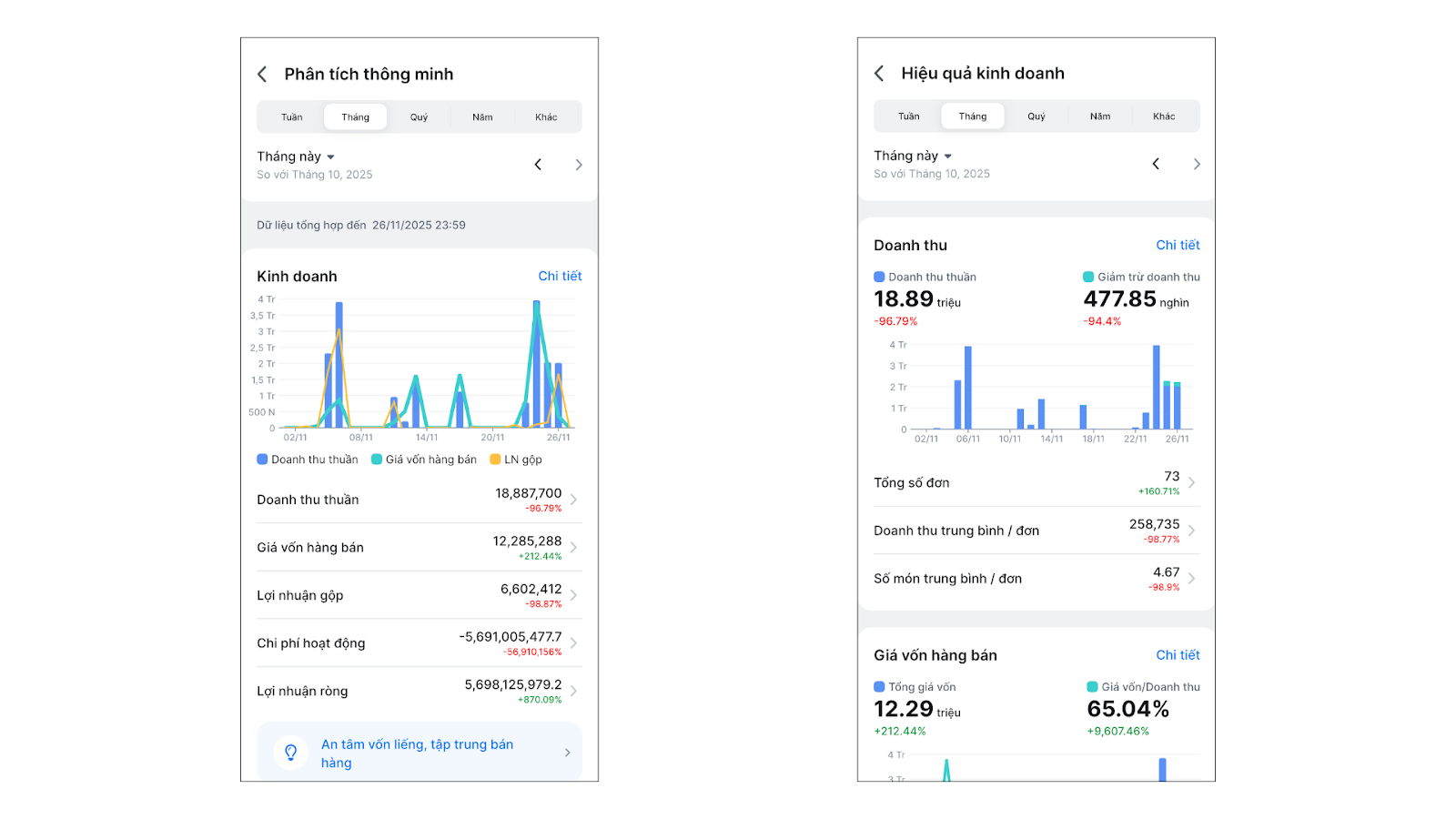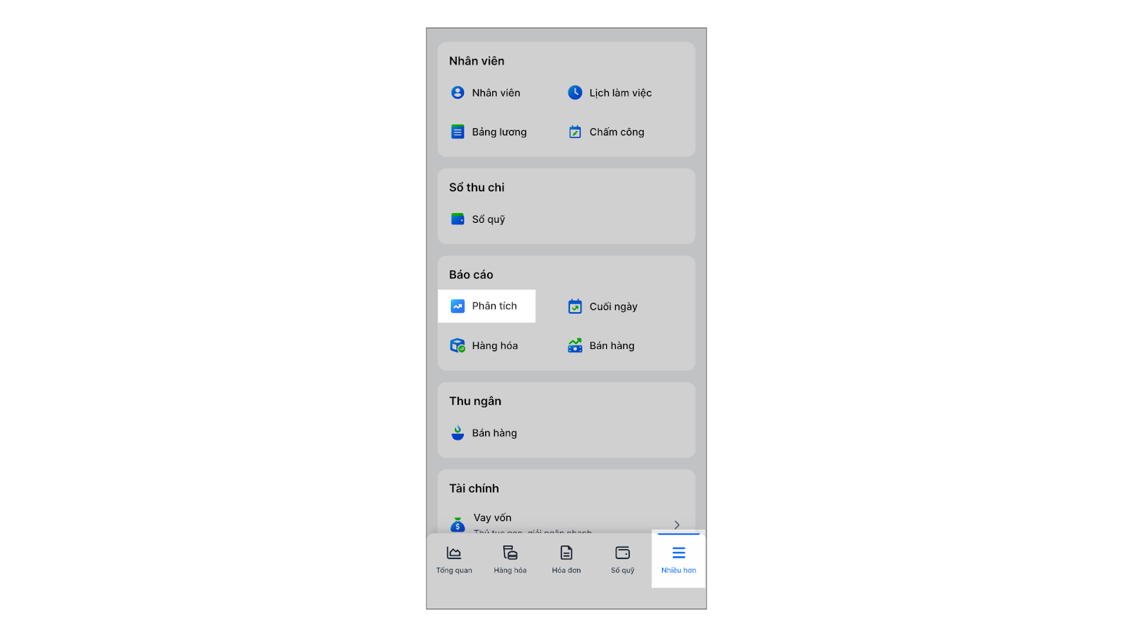 - Tại màn hình Phân tích thông minh, lướt đến khối Kinh doanh.