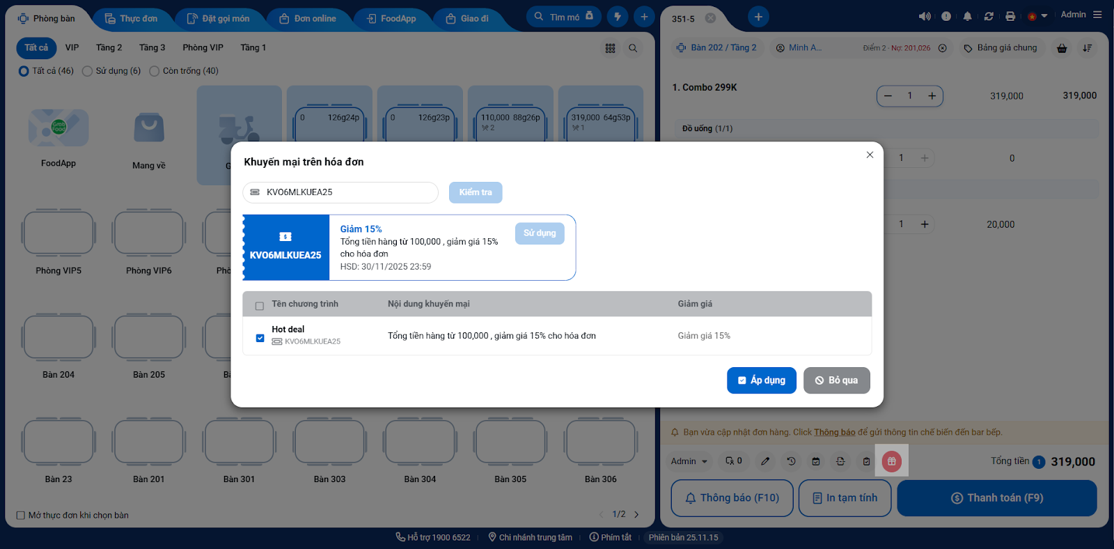 - Tình huống: Khi bạn cần áp dụng các chương trình ưu đãi cho khách hàng thành viên, cho phép họ dùng điểm tích lũy hoặc các mã giảm giá để thanh toán cho bữa ăn.