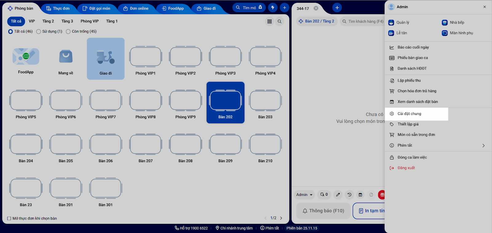 - Trên màn hình Thu ngân bạn nhấn biểu tượng tùy chọn