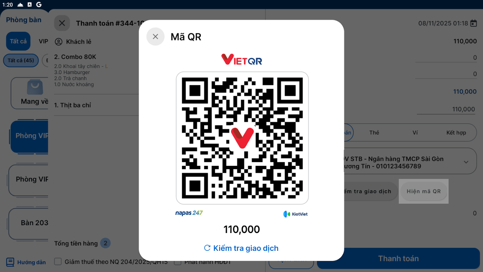 - Tình huống: Khách hàng quét mã QR để thanh toán trực tiếp trên màn hình cảm ứng của máy POS.