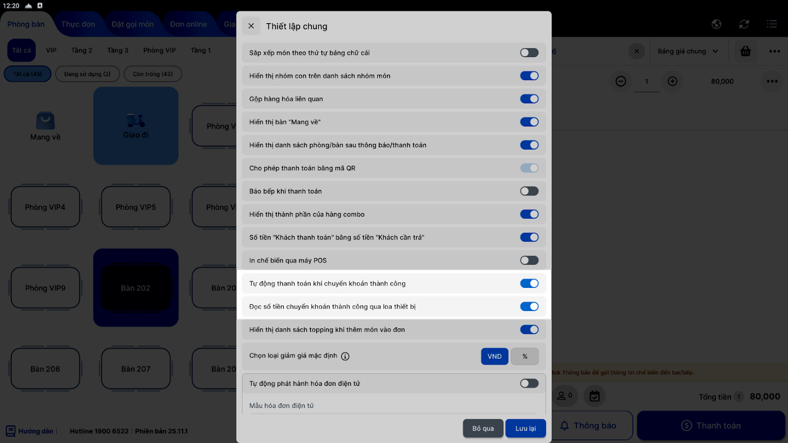 - Tự động hóa và quản lý chính xác: Giúp chủ nhà hàng loại bỏ thao tác đối chiếu thủ công, giảm thiểu sai sót nhờ tính năng tự động nhận thông báo giao dịch thành công từ ngân hàng/ví điện tử ngay trên màn hình Thu ngân.