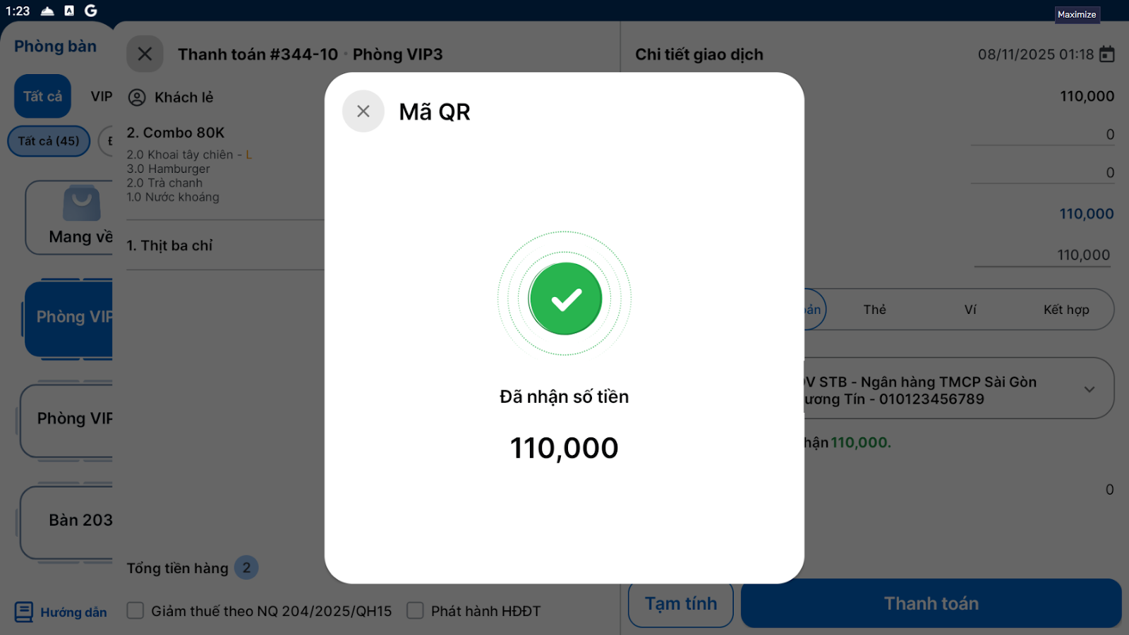 3. Tự động hoàn thành hóa đơn khi quét QR thành công