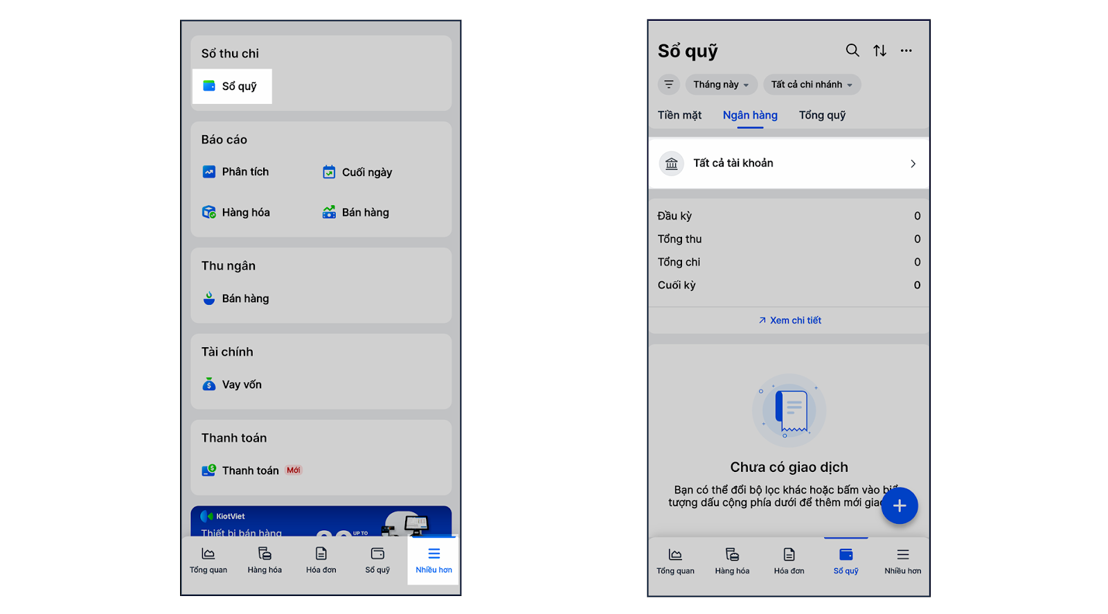 - Từ menu Nhiều hơn, chọn Sổ quỹ.