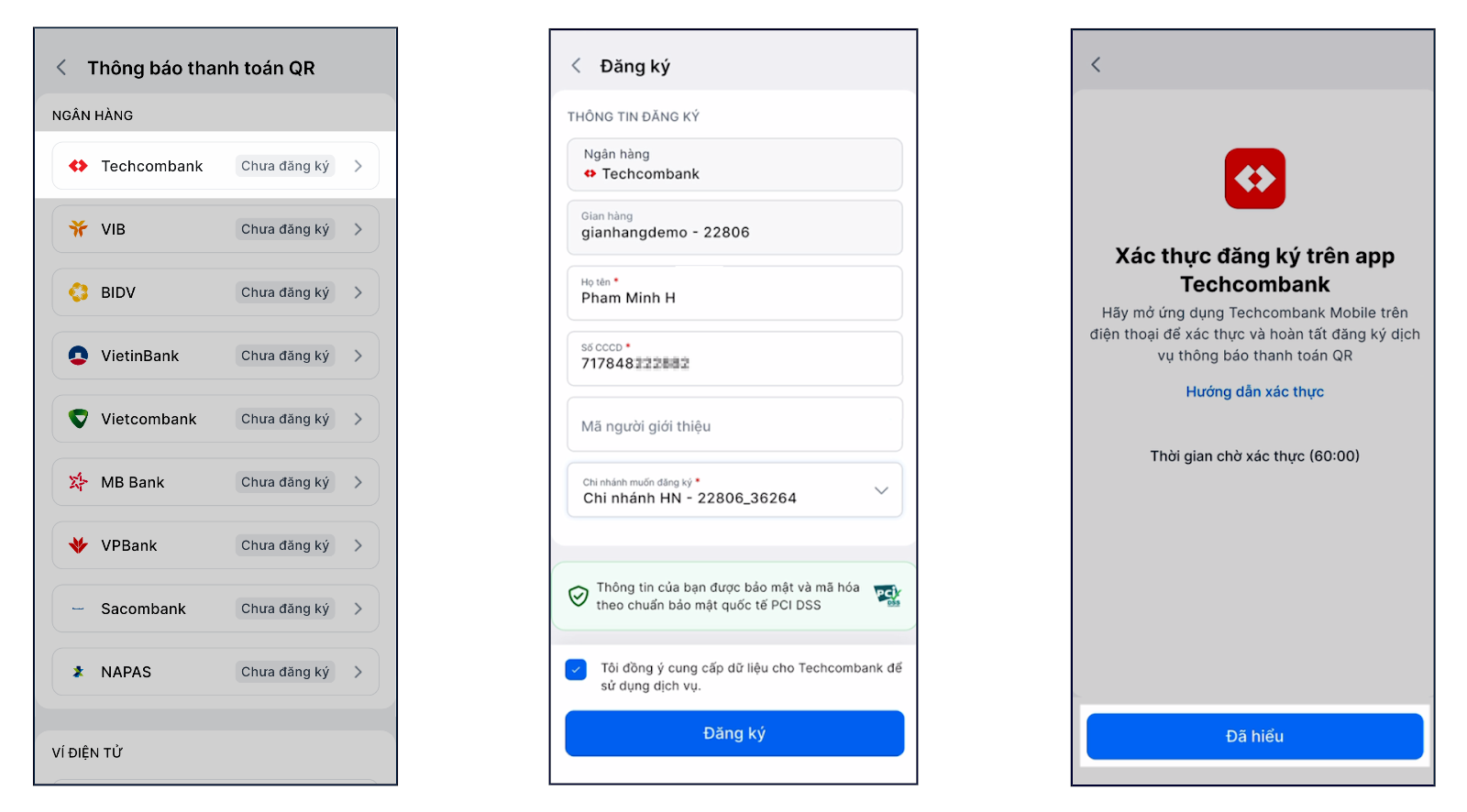 - Họ tên, Số CCCD: Phải trùng với thông tin đăng ký tại ngân hàng.