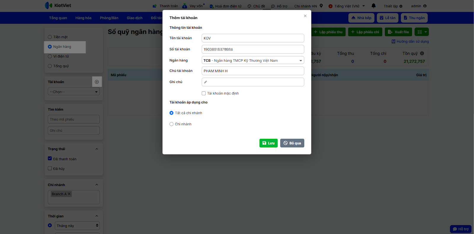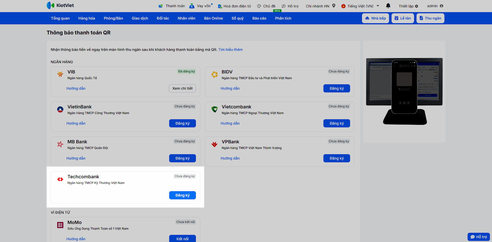 - 2. Thêm tài khoản Techcombank vào KiotViet