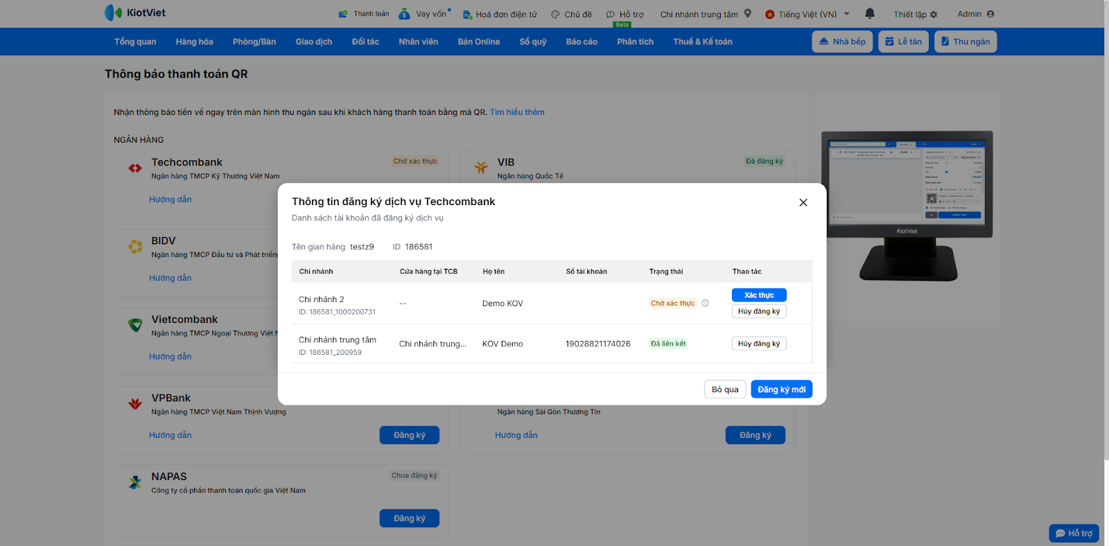 - 2. Thêm tài khoản Techcombank vào KiotViet