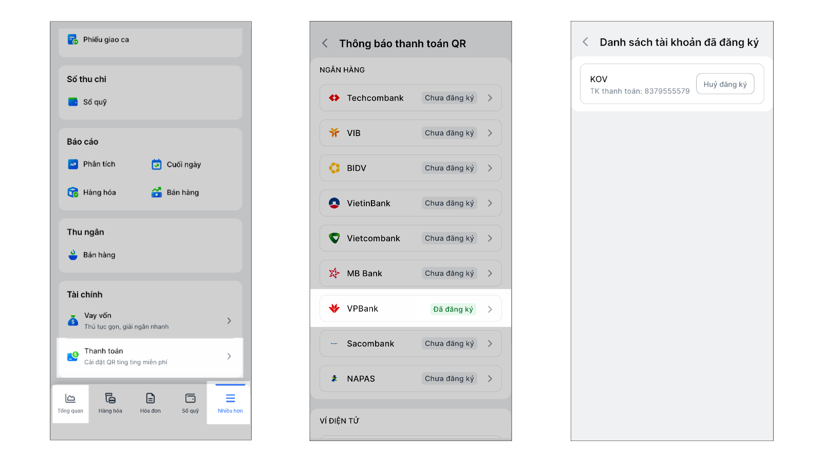 - Hỗ trợ Nhân viên Thu ngân/Phục vụ: Nhận thông báo thanh toán thành công ngay lập tức trên màn hình thu ngân hoặc ứng dụng di động, giúp xác nhận giao dịch nhanh chóng mà không cần kiểm tra trên ứng dụng ngân hàng.