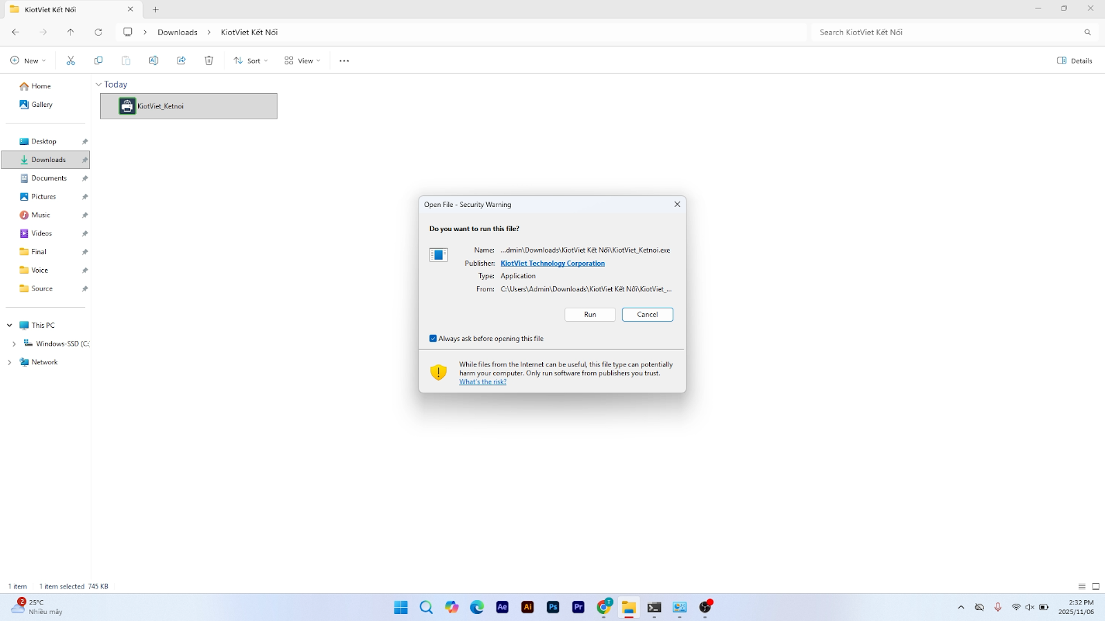 - Lưu ý: Để hệ thống hoạt động, App KiotViet Kết Nối phải luôn được chạy ngầm trên máy tính.