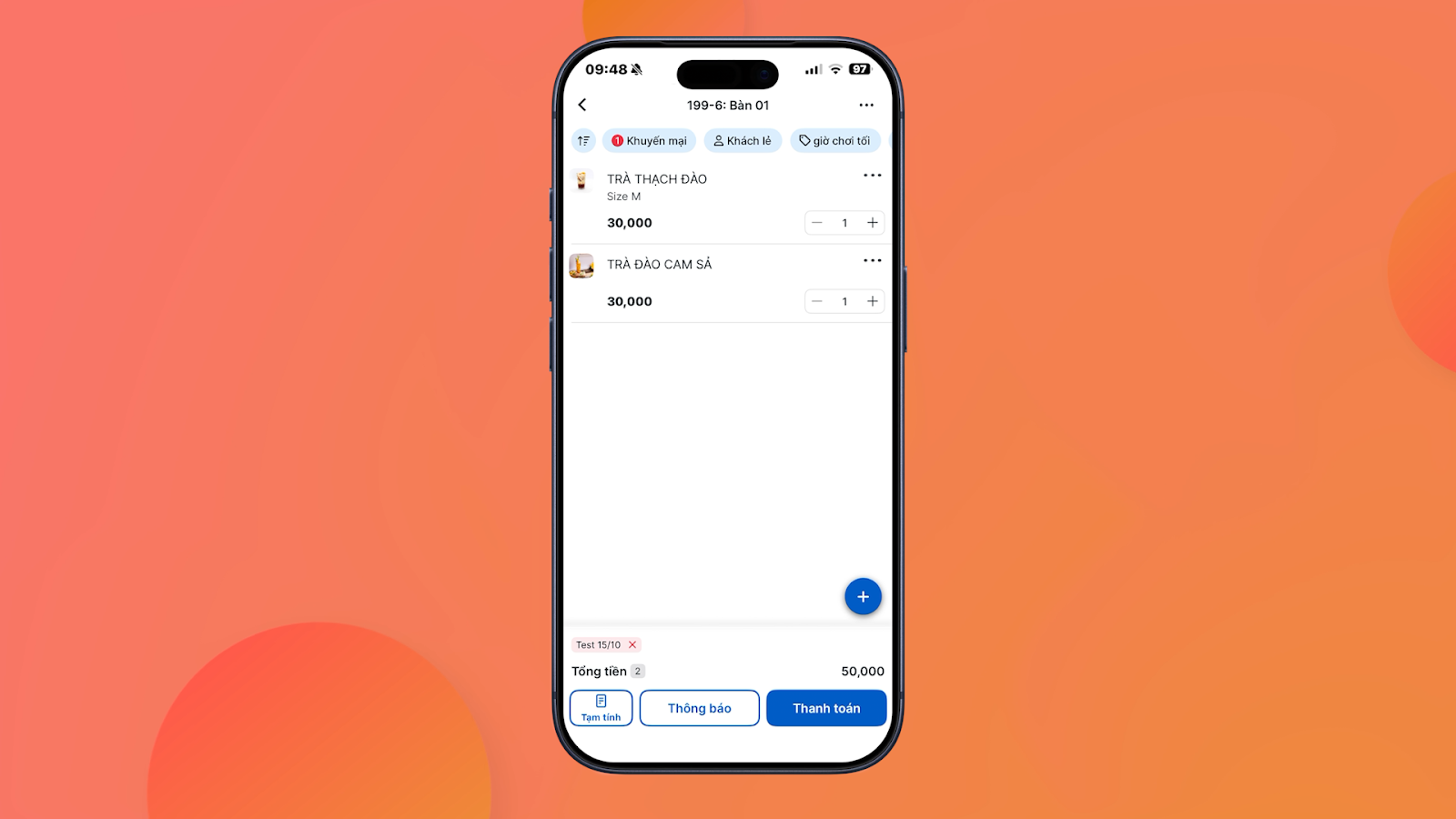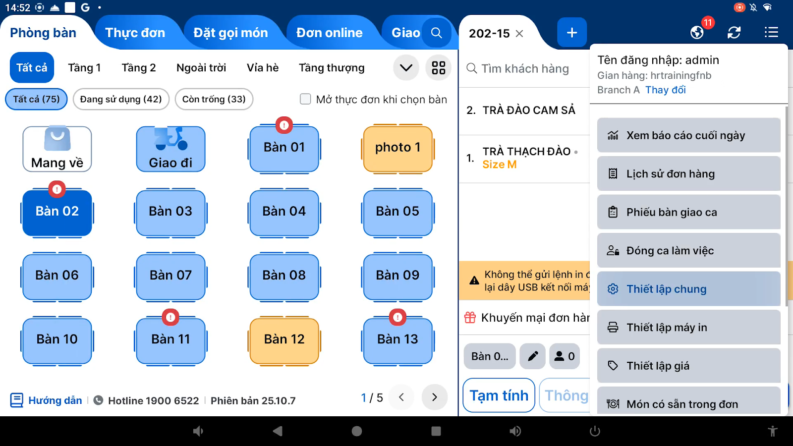 - Tình huống: Cửa hàng bạn đã cài đặt máy POS làm trung tâm xử lý in (như Phần III). Nhân viên dùng điện thoại để order.